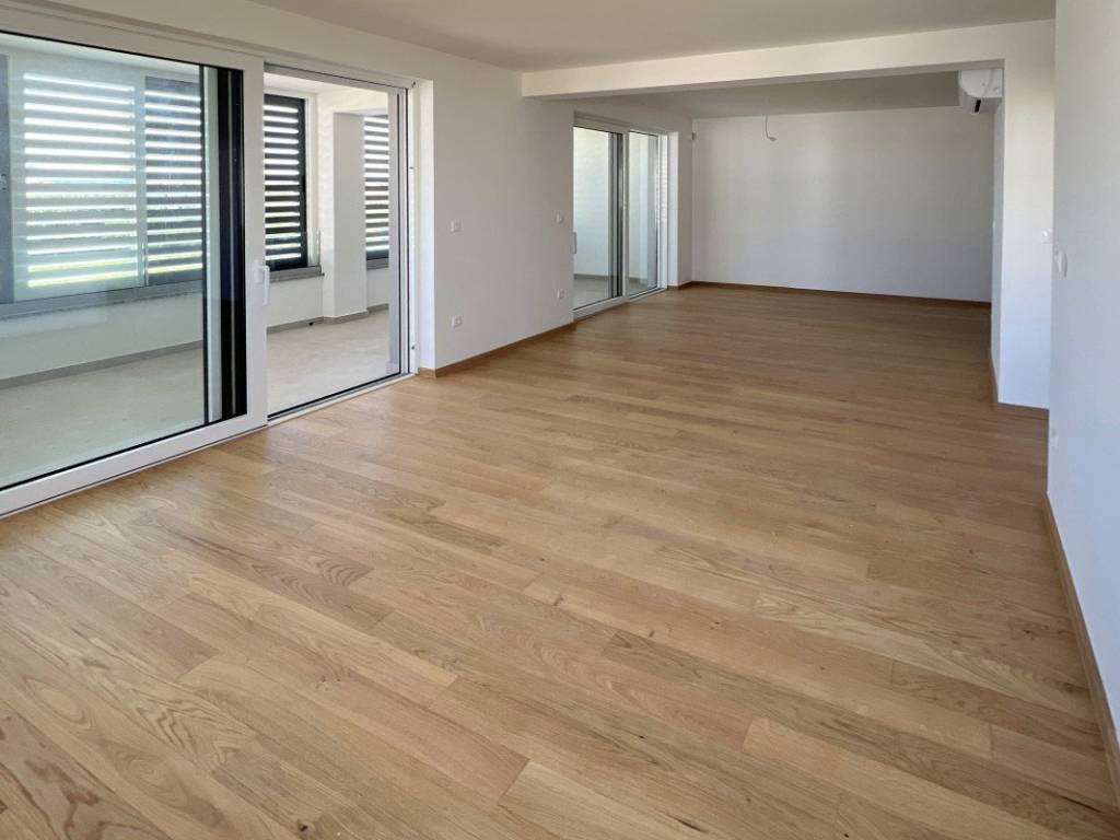 Stan je opremljen prema visokom standardu gradnje, uključujući keramičke pločice u kupaonici, WC-u, kuhinji i na terasama, kvalitetan parket u spavaćim sobama i dnevnom boravku te klima uređaj za ugodan boravak tijekom cijele godine.