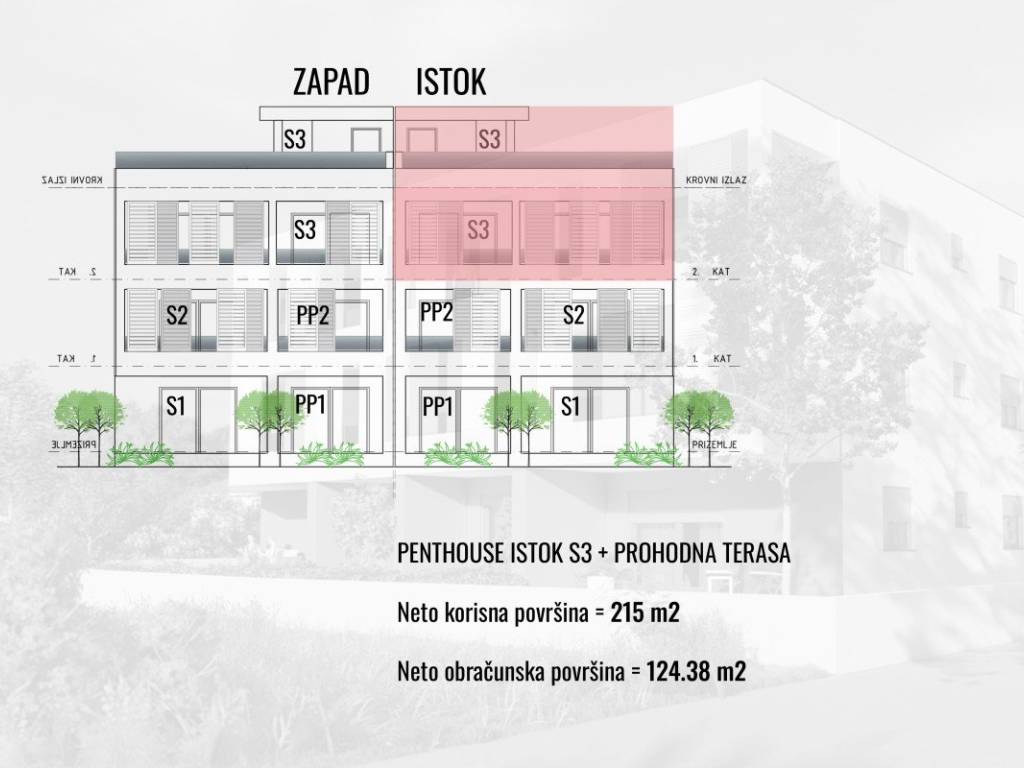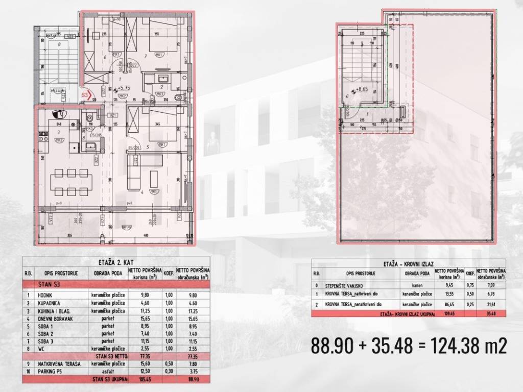 Na atraktivnoj lokaciji u novogradnji u Kaštel Štafiliću prodaje se prostrani dvoetažni penthouse (S3) ukupne obračunske površine 124,38 m. Stan se proteže kroz drugi kat i krovnu terasu, pružajući vrhunski komfor i spektakularan pogled na more.