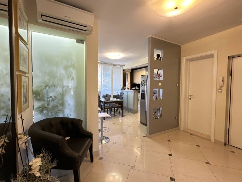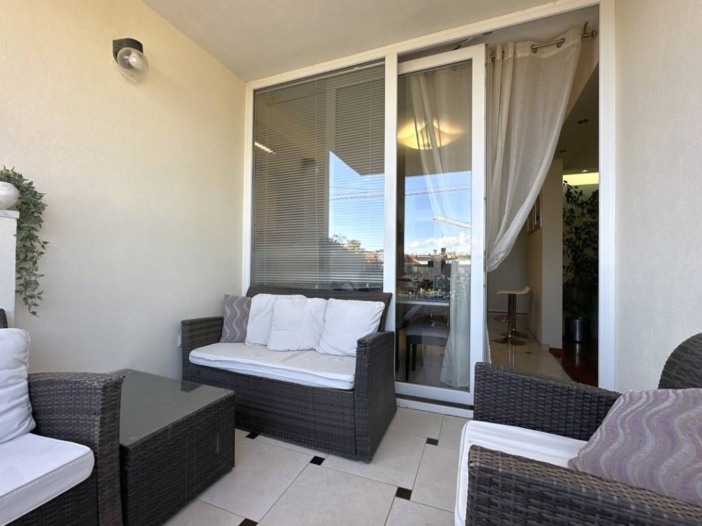 Prostrani dnevni boravak moderno je uređen te povezan s kuhinjom i blagovaonicom u funkcionalan open space koncept, stvarajući savršen prostor za svakodnevni život i druženje. Iz dnevne sobe omogućen je izlaz na lođu.Stan raspolaže s dvije kupaonice.