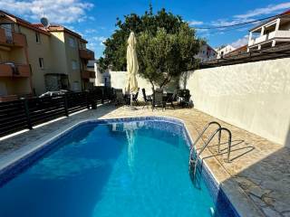 Ova predivna nekretnina opremljena je brojnim pogodnostima koje osiguravaju maksimalnu udobnost i luksuz. Klimatizirani prostori jamče ugodnu temperaturu tijekom cijele godine, dok privatni bazen pruža pravo osvježenje u toplim ljetnim danima. Vlastito parkirno mjesto omogućava sigurnost i praktičnost, a roštilj u dvorištu idealan je za uživanje u pripremi dalmatinskih specijaliteta.