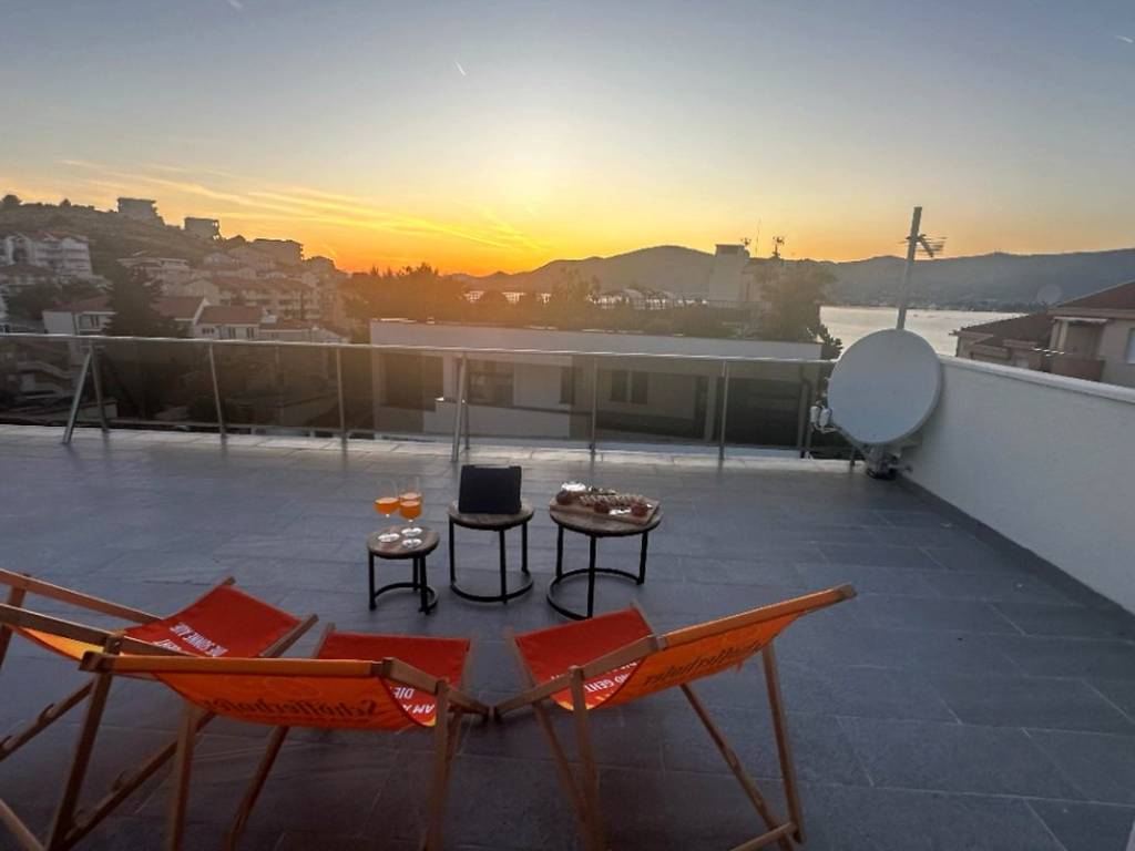 Treća etaža sastoji se od jednog potpuno opremljenog apartmana, sa kuhinjom i blagovaonicom, elegantnim dnevnim boravkom,dvijema modernim kupaonicom i udobnim spavaćim sobama. Apartman ima vlastite terase s kojih se pruža fascinantan pogled na beskrajnu morsku pučinu.