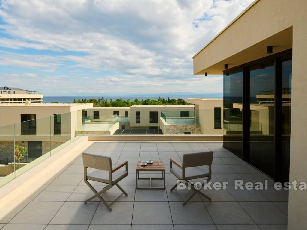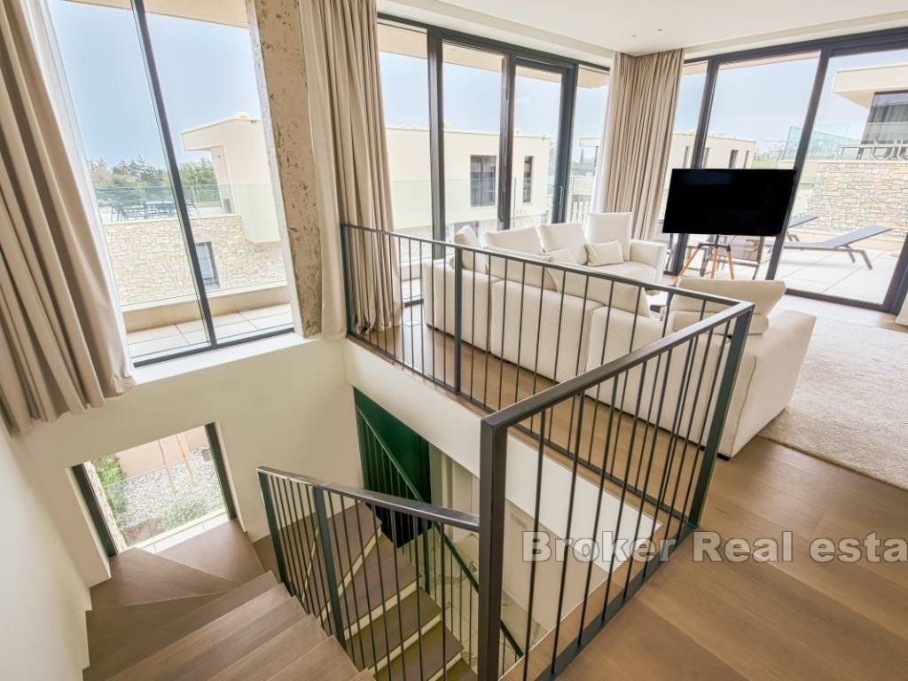 Moderna vila koja se smjestila unutar luksuznog resorta u predivnoj Savudriji, Istra. Vila se prostire na četiri etaže. Podruma, suterena, prizemlja i prvog kata. Stambena površina vila iznosi 255,40m2, uz dodatnih 46,10m2 krovne terase, te 26,80m2 balkona.