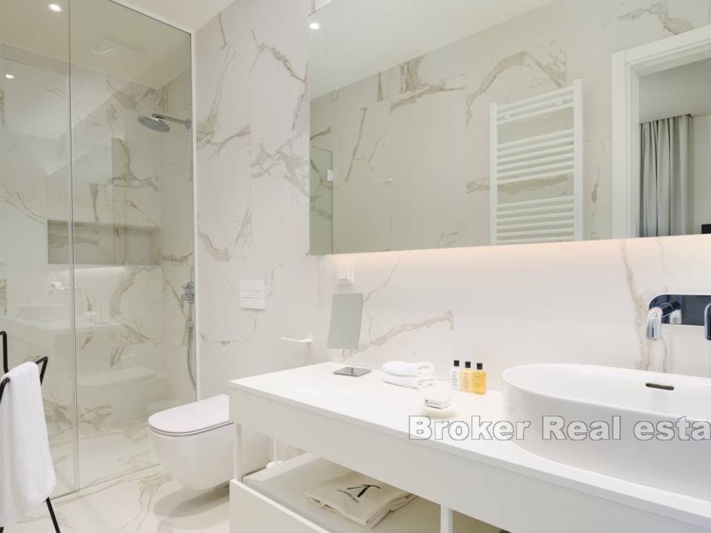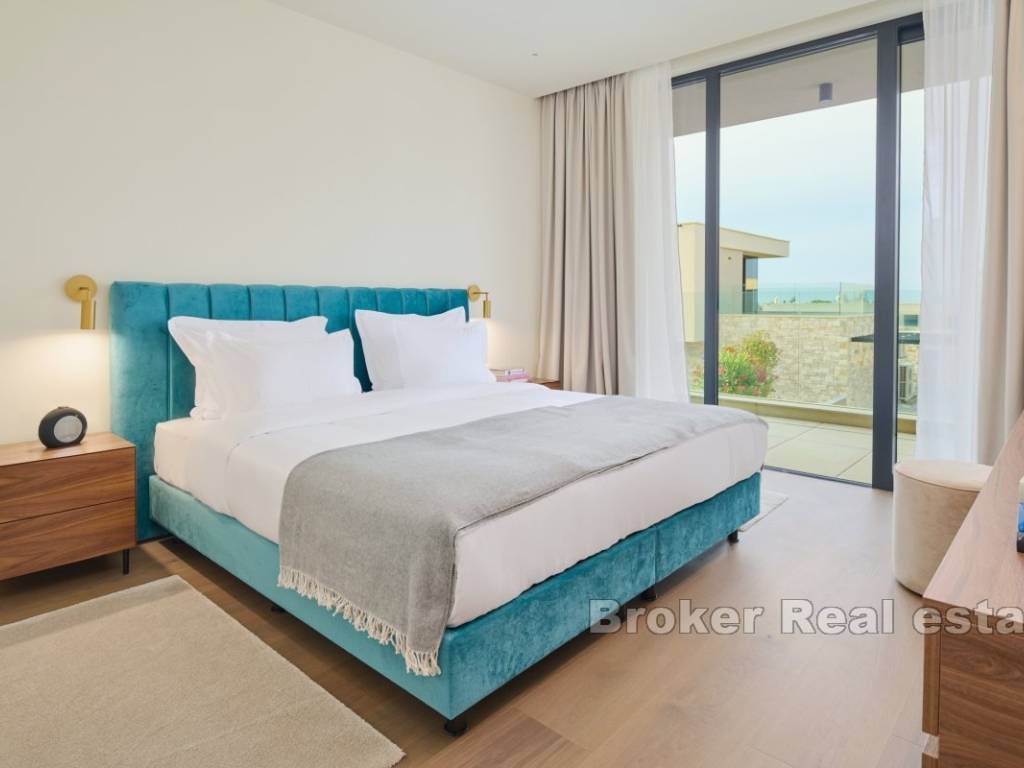 Vila se sastoji od četiri etaže. Podruma koji je rezerviran za ulazni hodnik, ostavu, sobu koja je predviđena za praonicu, soba za zabavu, te vinski podrum. Suteren vile osiguran je za ulazni hodnik, spavaće sobe s vlastitim kupatilom, sobe za opremu kućanstva, te garaže. Na prizemnoj etaži nekretnine nalaze se dvije prostrane spavaće sobe s vlastitim kupatilima, te izlazom na balkon, dok je prvi kat osiguran za otvoreni prostor gdje su se smjestile kuhinja, blagovaonica i dnevni prostor, te dodatni toalet. Također iz otvorenog prostora se izlazi na krovnu terasu.