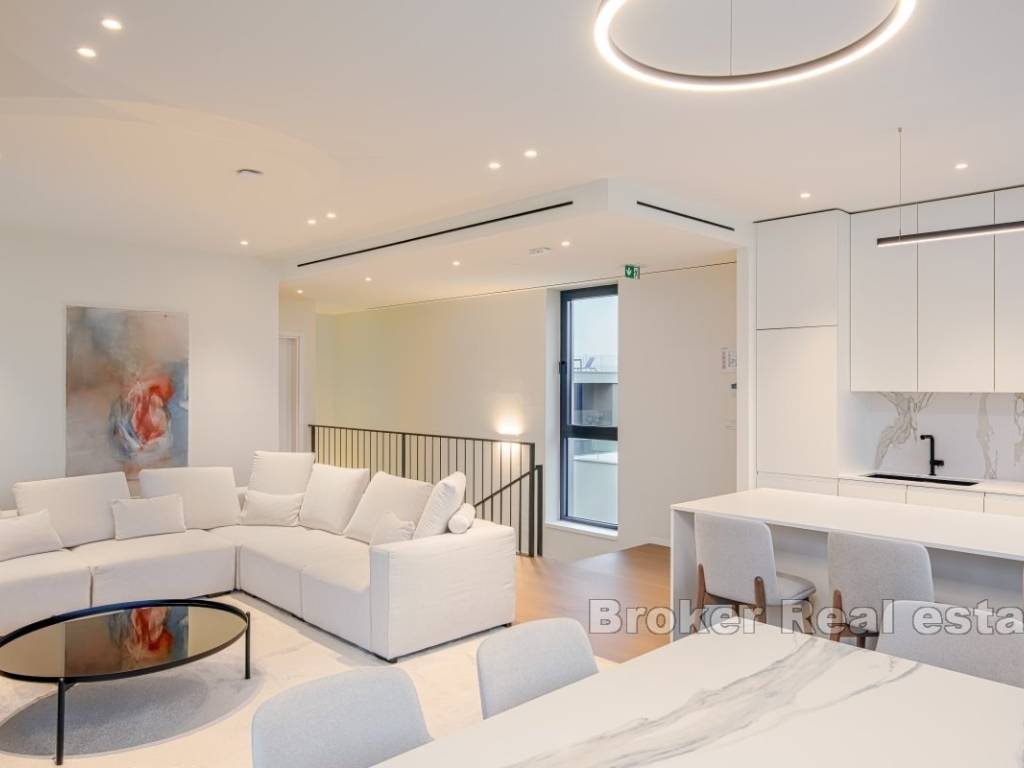 Raspored vile se sastoji od suterenskog dijela koji uključuje blagovaonicu, vinski podrum, ostavu i sobu koja je zadužena za opuštanje i zabavu. U prizemlju nekretnine nalazi se ulazni hodnik koji vodi do dnevnog boravka, kupatila, ostave te garaže koja sadrži dva garažna parking mjesta. Prvi kat rezerviran je za dvije spavaće sobe, svaku sa svojim vlastitim kupatilom i izlazom na balkon, te praonicu. Dok drugi kat nekretnine predstavlja otvoreni koncept s kuhinjom, blagovaonicom i dnevnim prostorom, te dodatnim toaletom i još jednom spavaćom sobom s privatnim kupatilom. Također iz svih prostorija se može izići direktno na krovnu terasu.