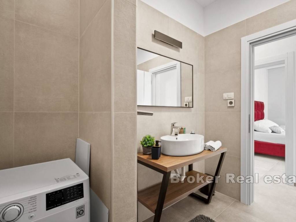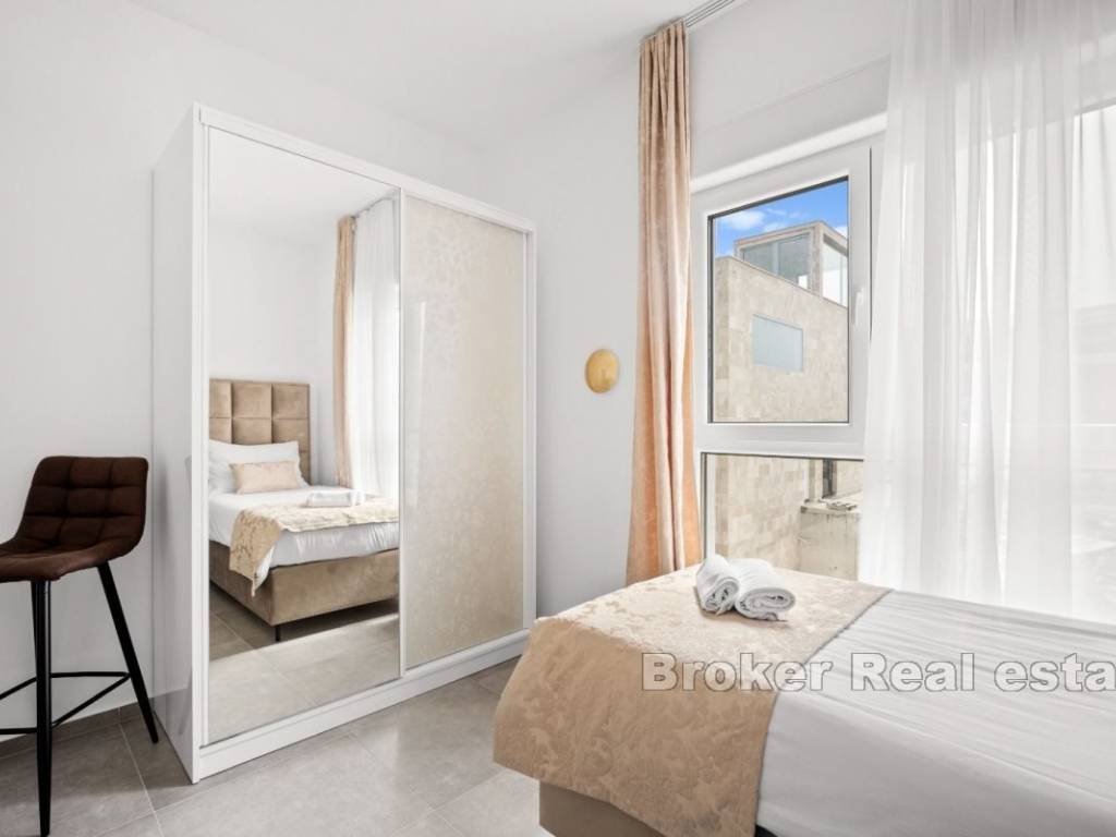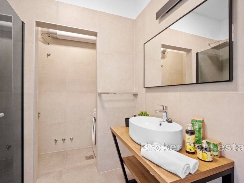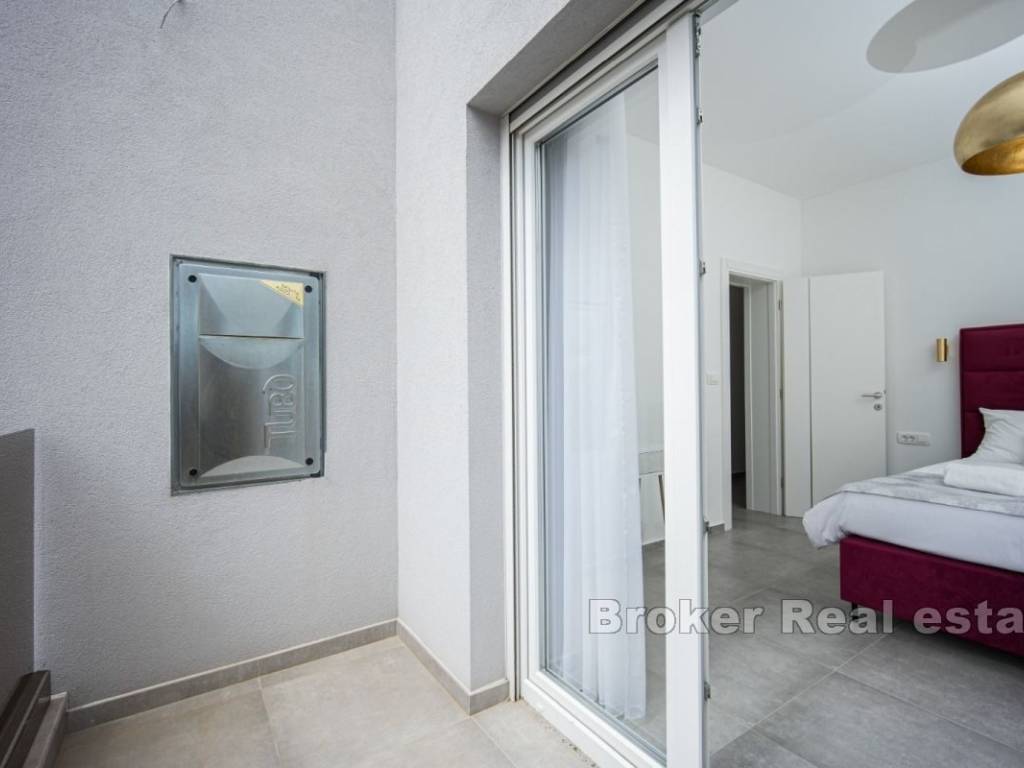 Osim raskošnog interijera, ovaj penthouse odiše osjećajem mira i profinjenosti, obećavajući najveću privatnost i izravan pristup netaknutoj šljunčanoj plaži. Svojom strateškom lokacijom, povezanom s kopnom mostom, stanovnici uživaju nesmetan pristup Zračnoj luci Split i mnoštvu sadržaja i atrakcija. Osim za ugodno utočište uz obalu ova nekretnina pruža izuzetnu priliku za turističko iznajmljivanje.