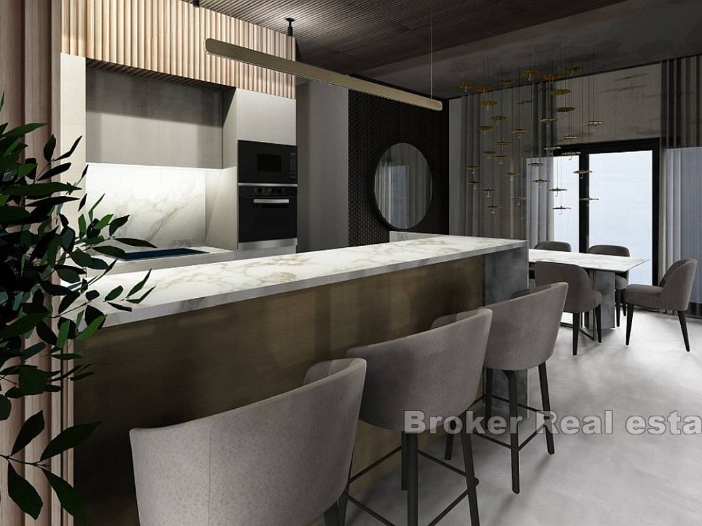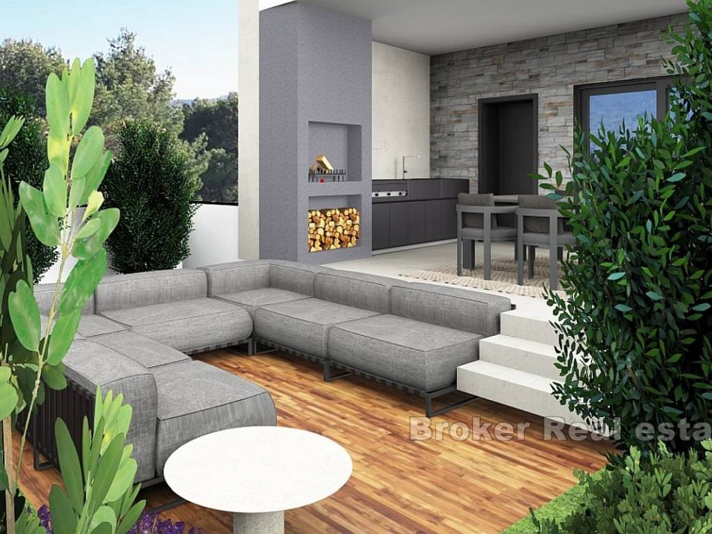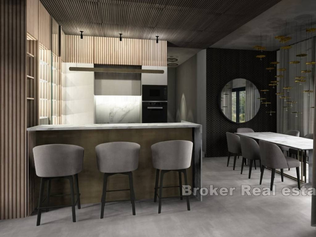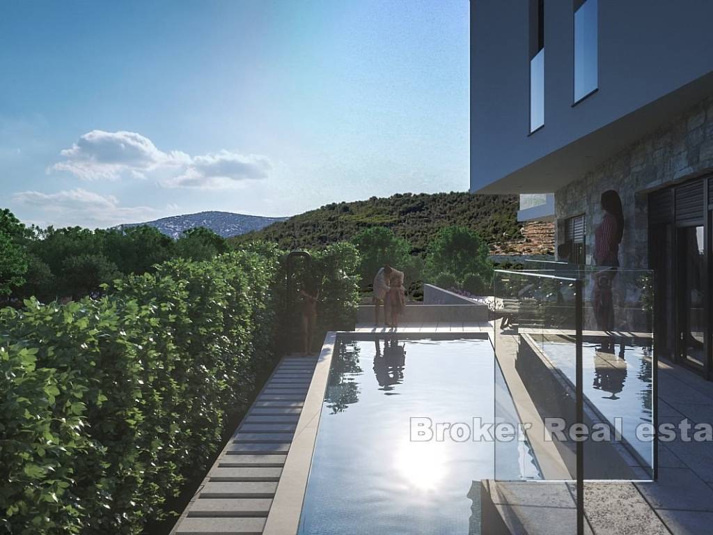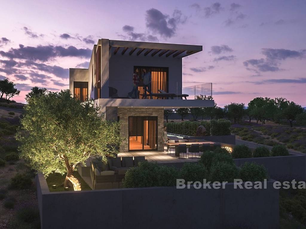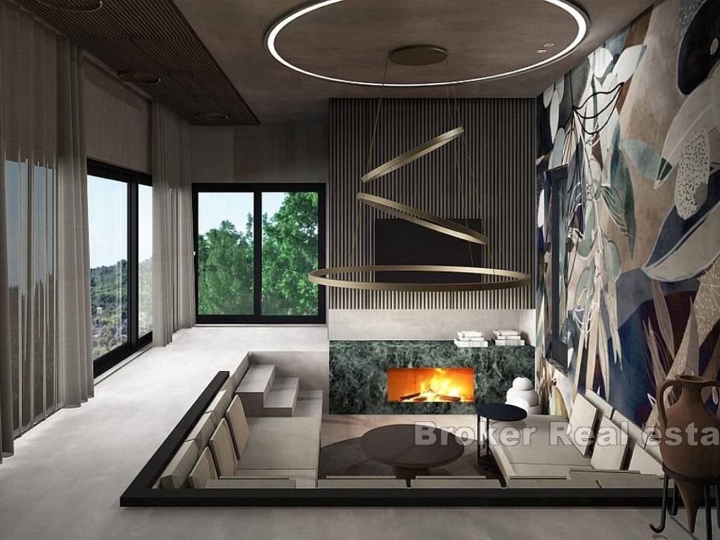 Na prodaju je novoizgrađena vila s bazenom i pogledom na more smještena u gradu Primoštenu. Nekretnina se prostire na dvije etaže i ima ukupnu stambenu površinu od 250 m2. Smjestila se na zemljištu ukupne površine 550 m2.