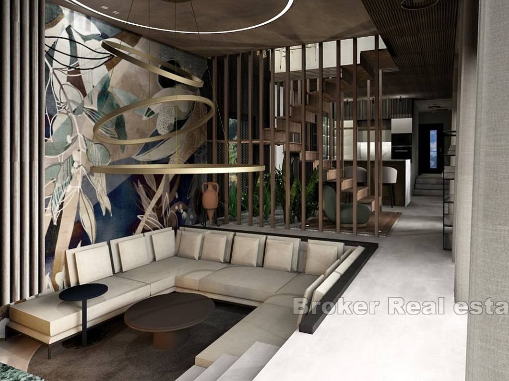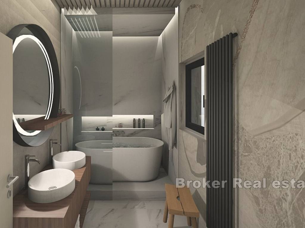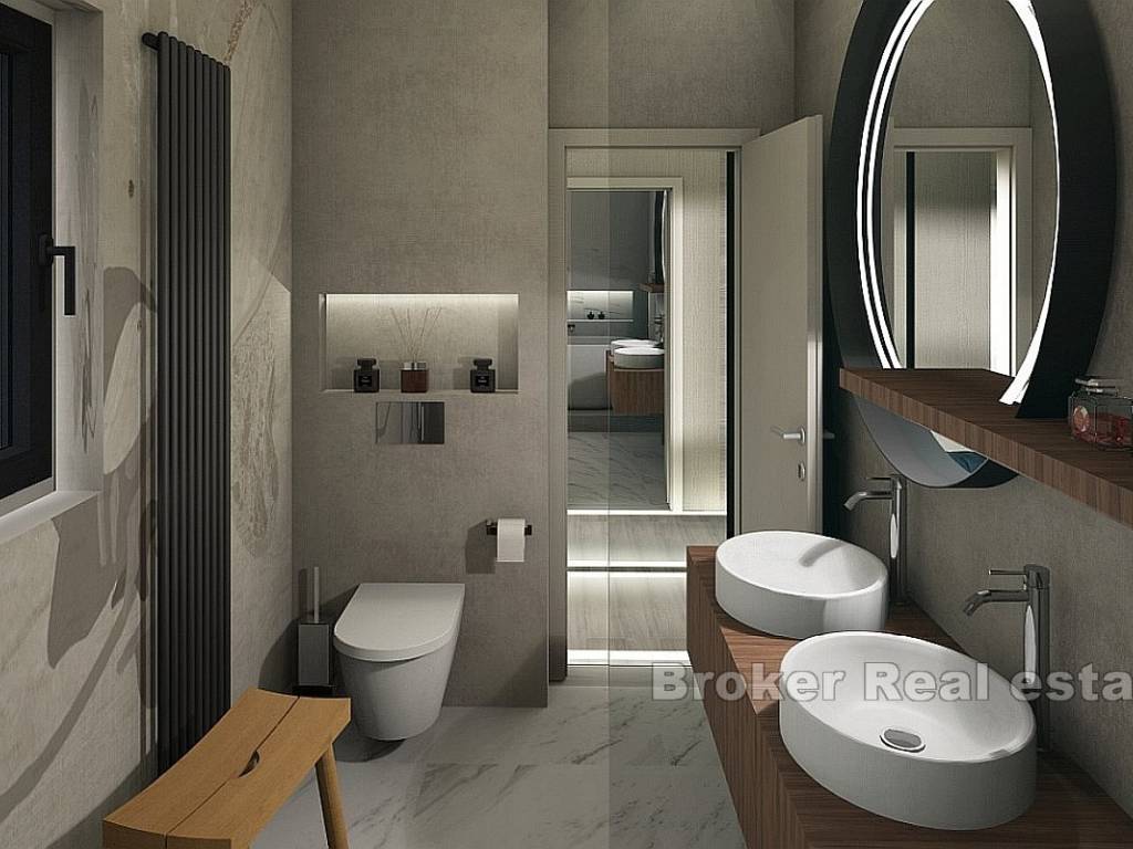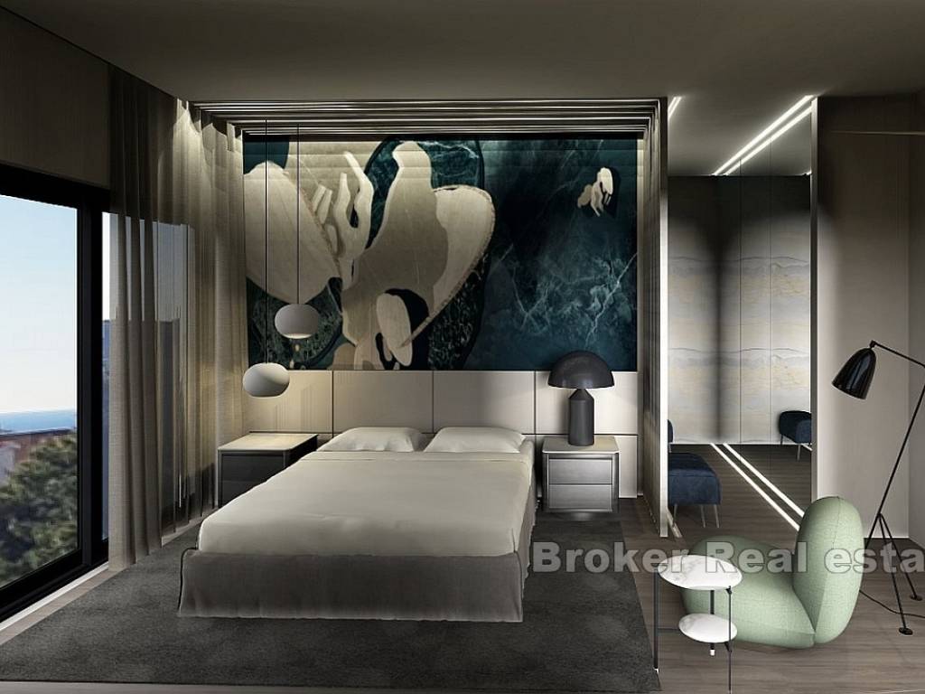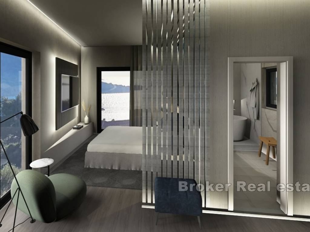 Unutarnjim stubištem dolazi se na drugu etažu na kojoj su se nalaze četiri spavaće sobe, svaka s vlastitom kupaonicom i garderobom, spremište i hodnik. Master spavaća soba ima pristup natkrivenoj terasi od 22 m2 s koje se pruža pogled na more.