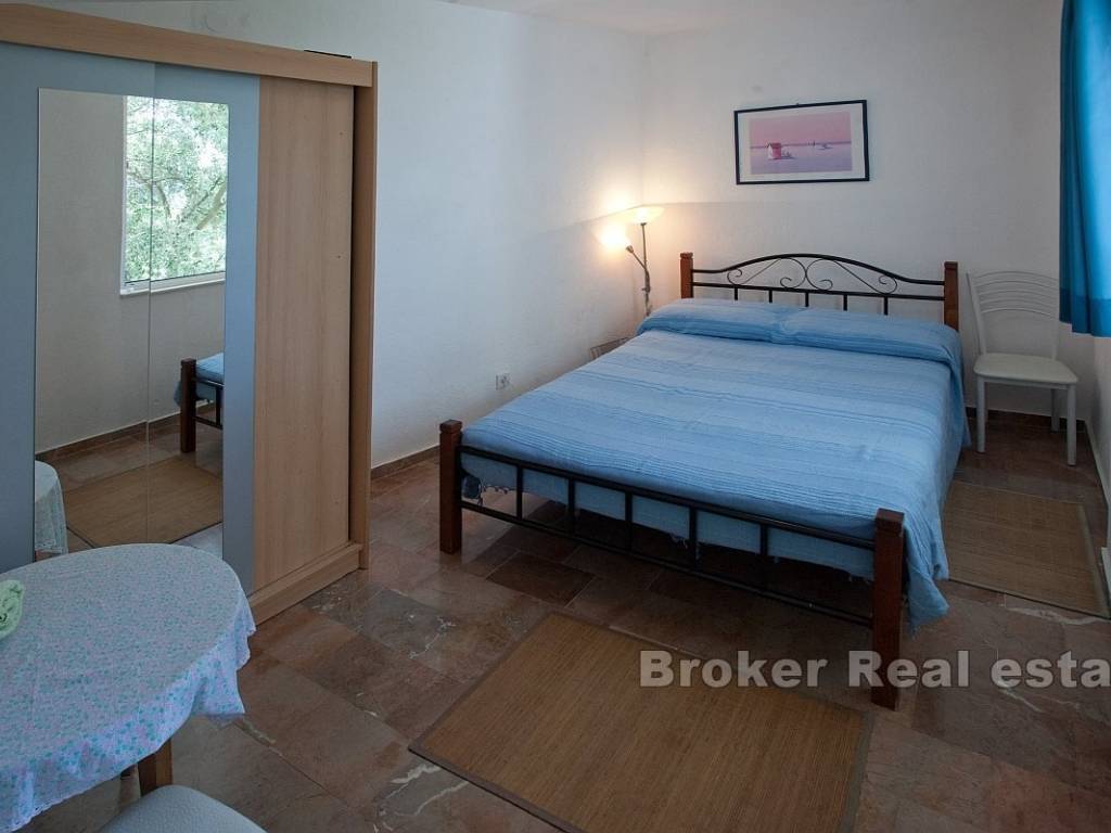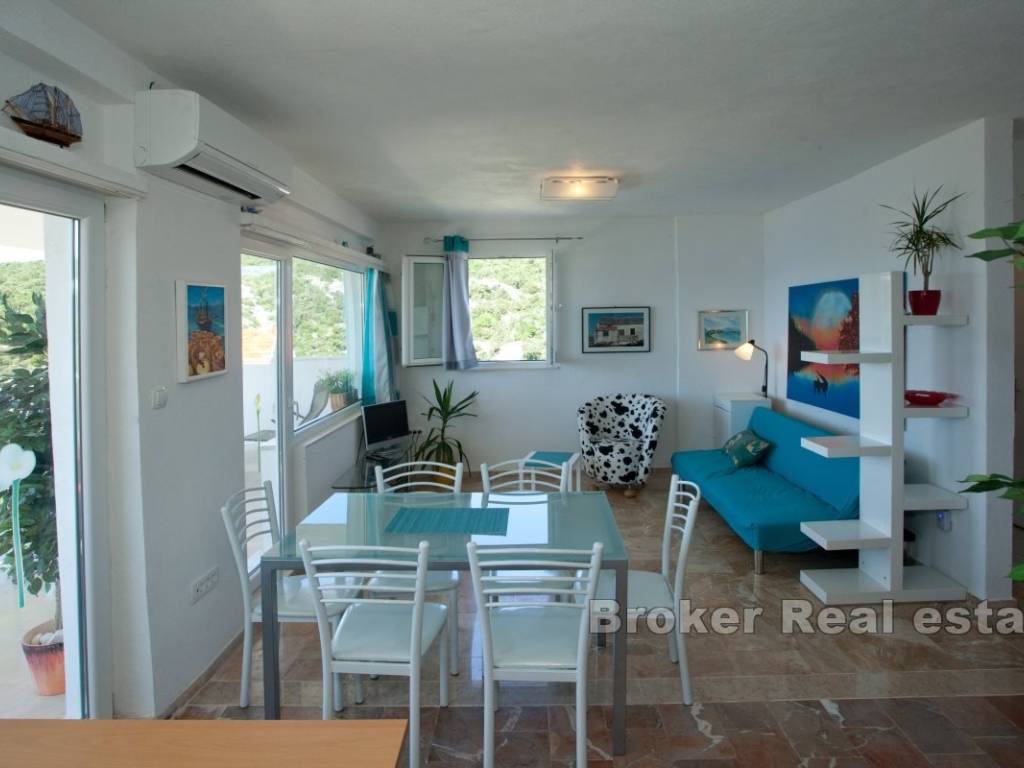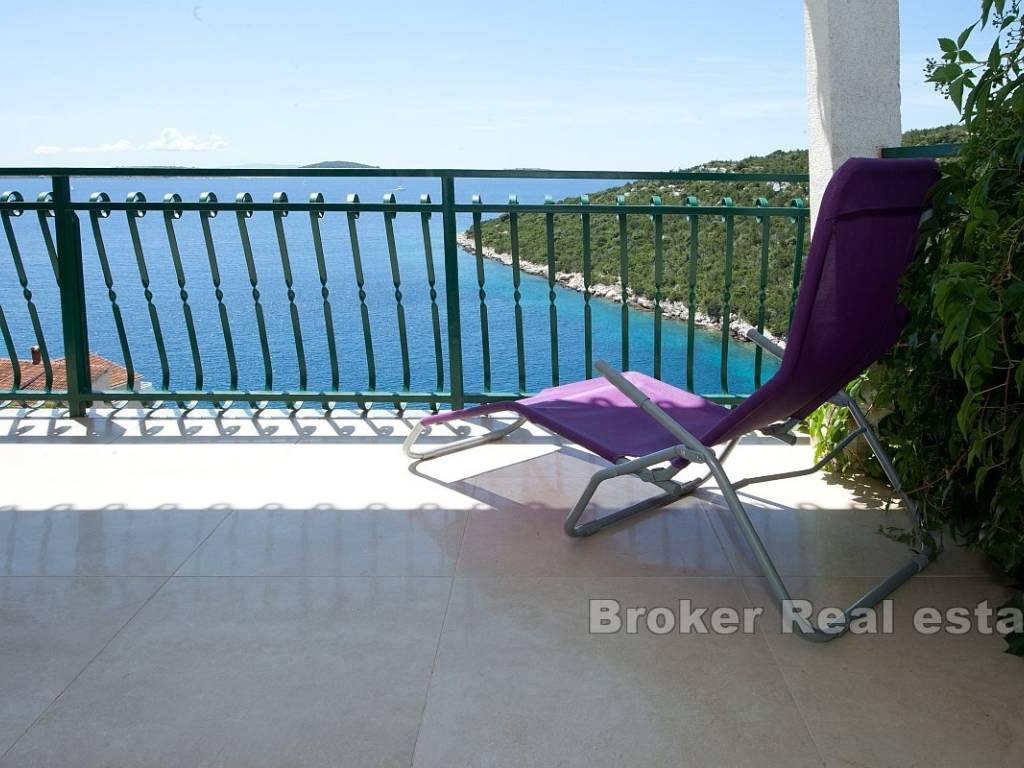 apartman s dvije sobe, dnevnim boravkom, kuhinjom i blagovaonicom te terasom s pogledom na more. Na prvom katu je prostrani apartman s tri sobe, dvije kupaonice, kuhinjom, blagovaonicom i dnevnim boravkom s izlazom na terasu koja nudi panoramski pogled.