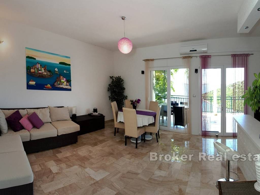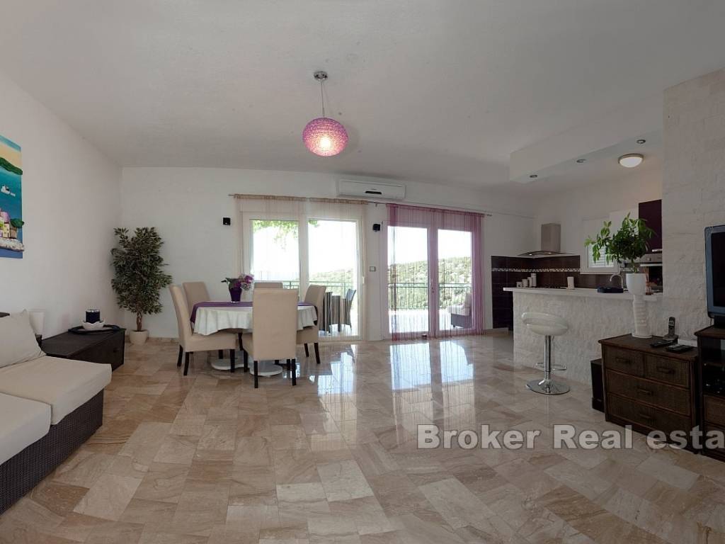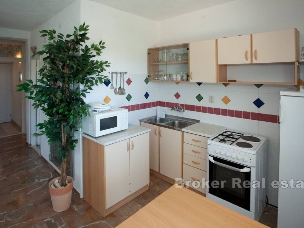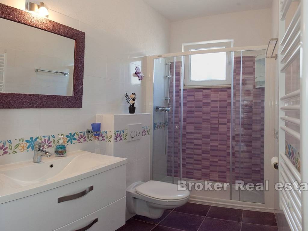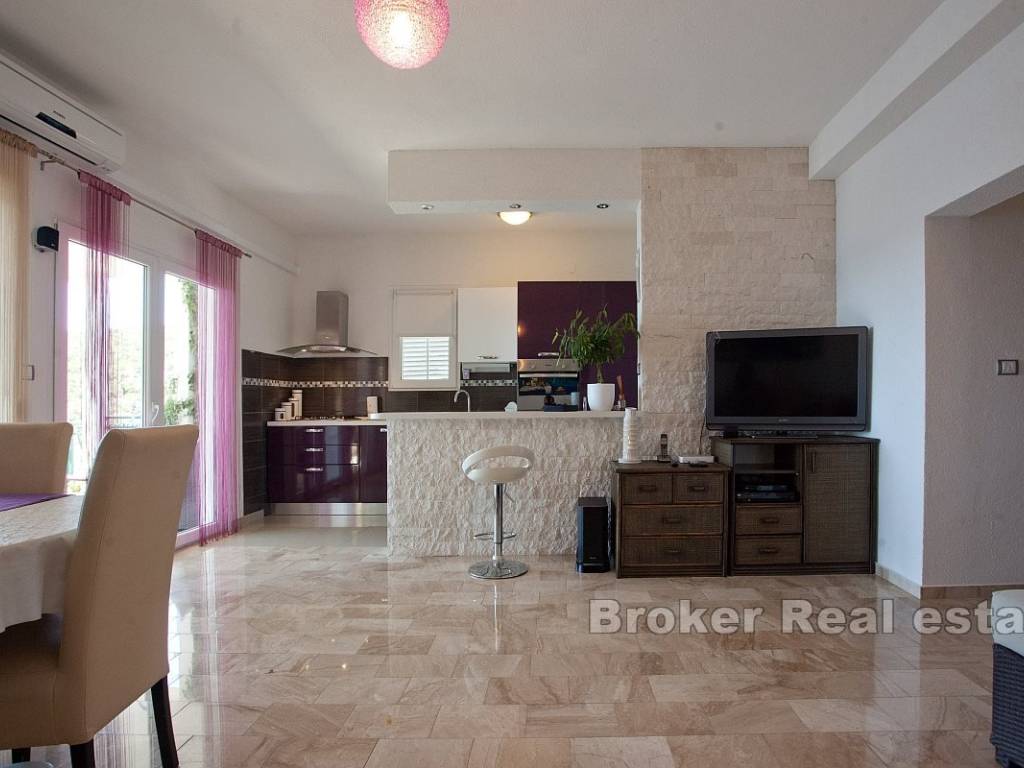 S terase se pruža prekrasan, otvoren panoramski pogled na more, što dodatno povećava atraktivnost. Podrum površine 33 m, pruža dodatni prostor za skladištenje ili druge namjene. U prizemju se nalazi