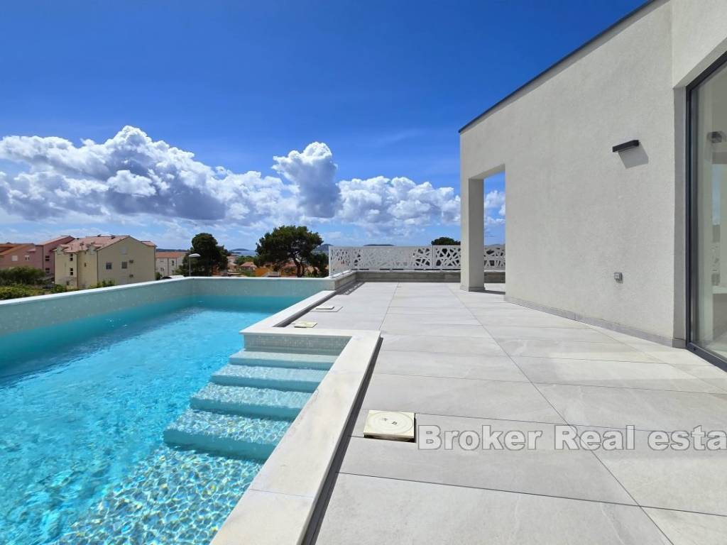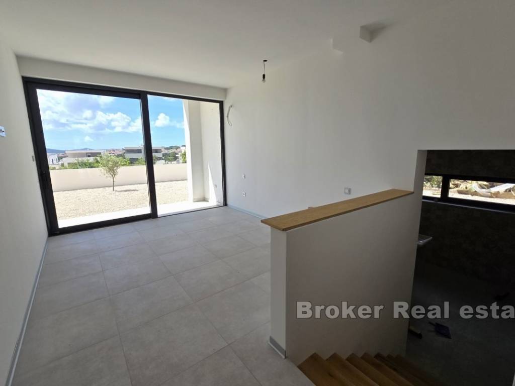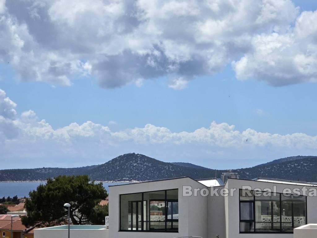 Novoizgrađen dvojni objekt s pogledom na more, smješten u mirnom susjedstvu u Vodicama.
