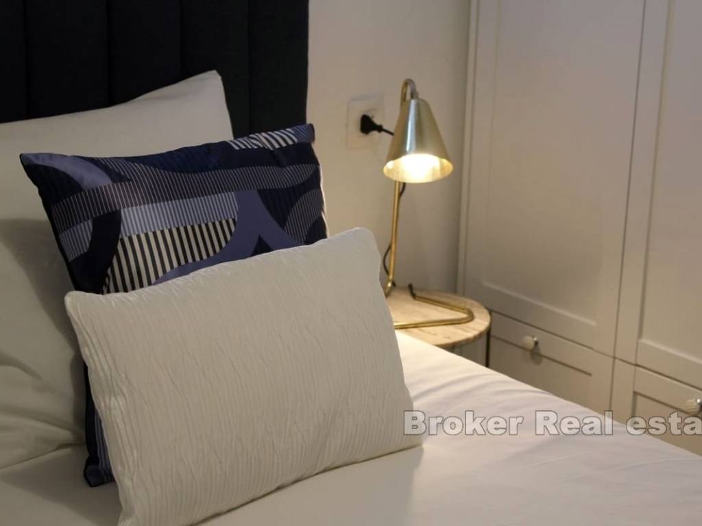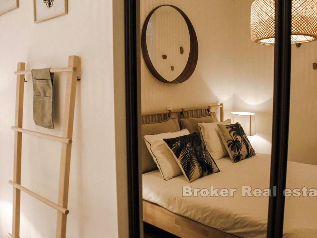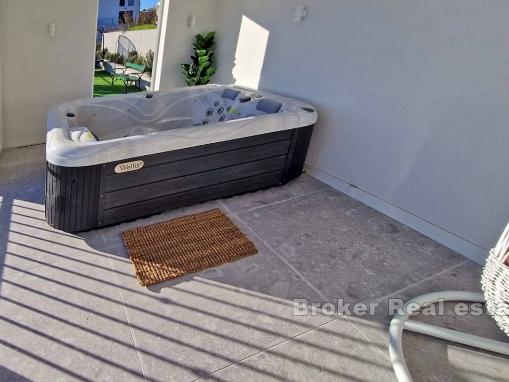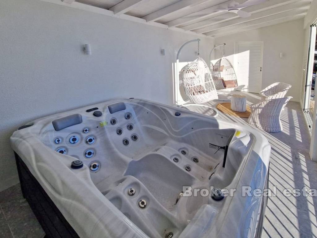 Izvanredano mjesto za opuštanje nudi privatni ljetnikovac, skriven od znatiželjnih prolaznika, koji uključuje jacuzzi i prostor za rekreaciju. Ova nekretnina nudi brojne mogućnosti kao uhodani turistički smještaj u blizini svih ključnih urbanih sadržaja.