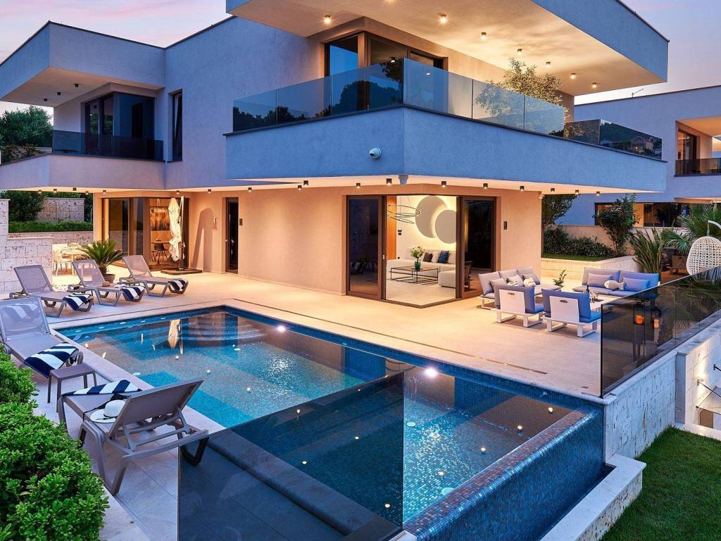 Sva tri bazena su grijana, a na dva vanjska bazena je površina oko bazena opremljena podnim grijanjem kako bi se vlasnicima i njihovim gostima omogućilo ugodnije korištenje istih tijekom cijele godine.