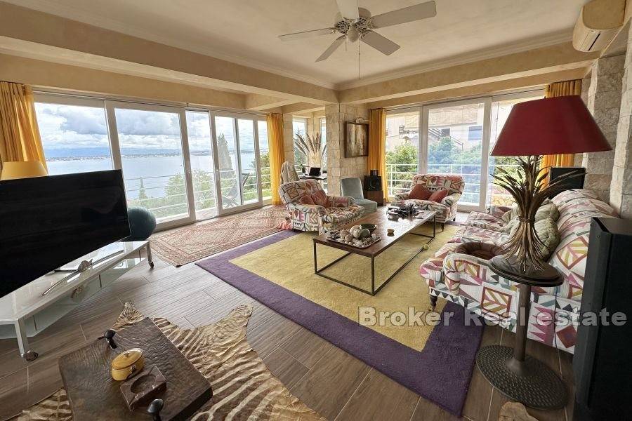 Sadrži luksuznu kuhinju, dnevni boravak/blagovaonicu, malu punu kupaonicu za goste i veliku gostinjsku sobu s odvojenim velikim spremištem područje. Iz dnevnog boravka nastavlja se terasa s roštiljem S koje se pruža prekrasan pogled na more. S prve terase stepenice vode do druge vrlo velike terase s pergolom od kovanog željeza, travnjakom s 2 stabla naranče i tri metra širokim stubištem koje se spušta do najniže razine vrta sa zelenom živicom.