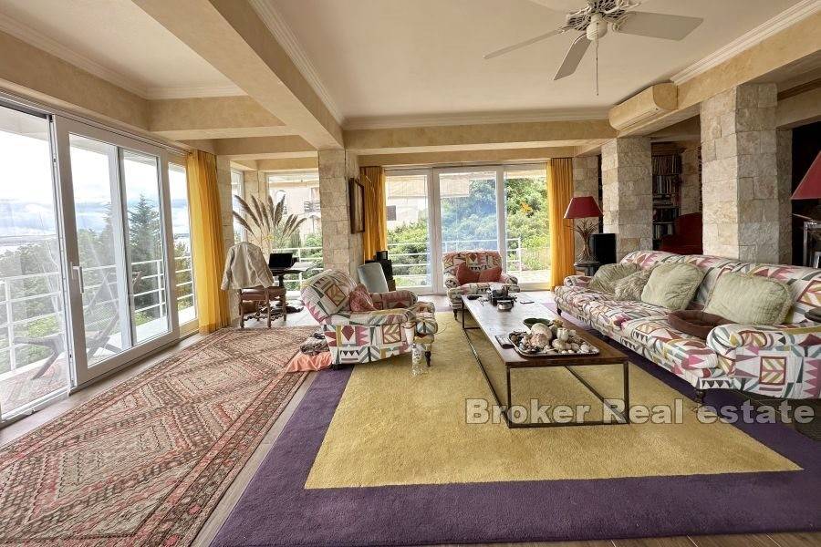 Unutrašnjim stubištem se silazi na donju etažu koja je koncipirana kao veliki otvoreni prostor s velikim kliznim prozorima.