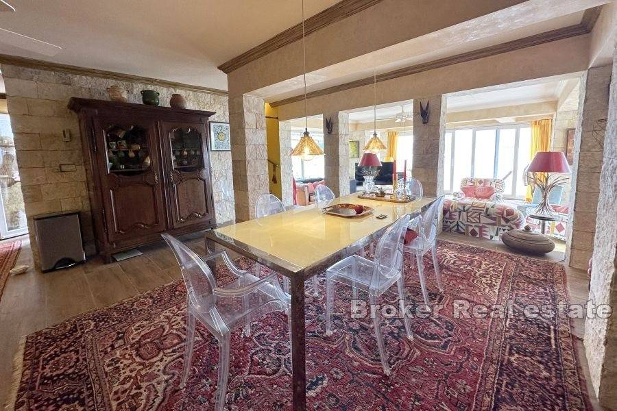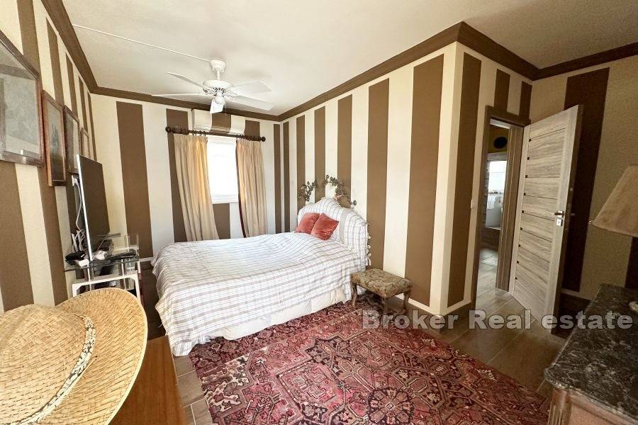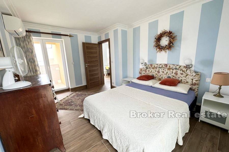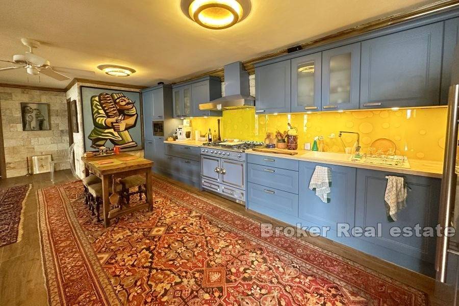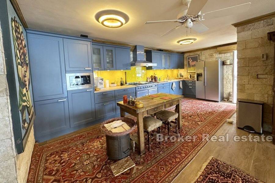 Kuća je potpuno renovirana 2018. od strane francuskog arhitekta/dizajnera interijera. Unutrašnjost je potpuno preuređena iznutra sa svim novim volumenima, novim električnim, vodovodnim instalacijama, prozorima, najsuvremenijim centralnim grijanjem/klimom, bojlerom od 300 litara te izvrsnom izolacijom. Svi podovi obloženi su keramičkim pločicama drvenog dizajna. Ima podno grijanje.