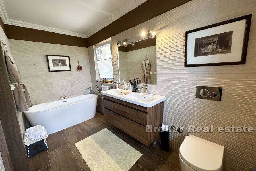 Zidovi svih kupaonica obloženi su elegantnim keramičkim pločicama, sva oprema je vrhunskih dizajnerskih marki. Unutarnje visine stropa su 2,90 cm.
