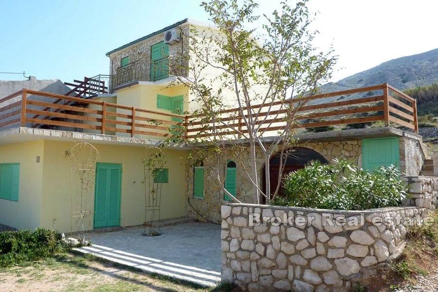 Apartmanska kuća s pogledom na more smještena u mirnom mjestu na otoku Pagu.