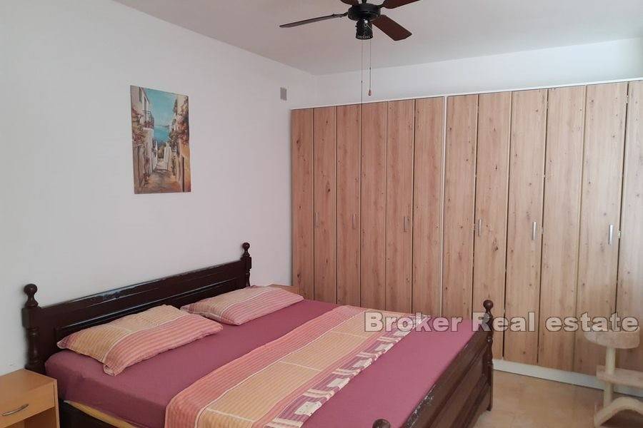 Kuća koja je dvojni objekt ima stambenu netto površinu 247m2 bez terase te se prostire na prizemlje i dva kata. U prizemlju se nalaze dva studio apartmana sa spavaćim i dnevnim dijelom te kupaonicom. Jedan od apartmana ima veću ostavu koja nudi mogućnost prenamjene. Oba apartmana imaju omogućen izlaz na terasu.