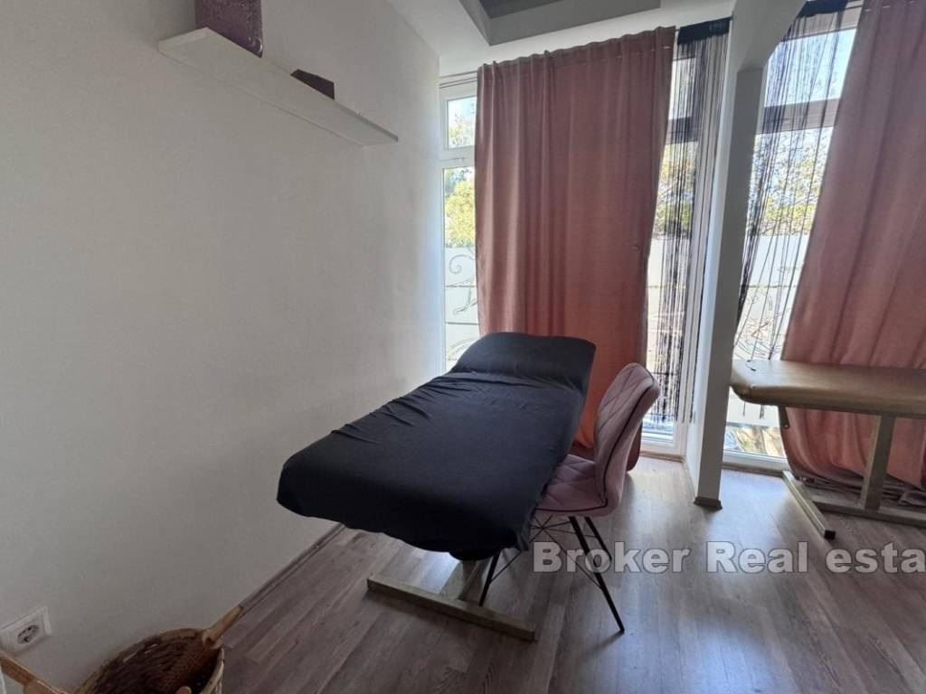 Sastoji se od 3 odvojene prostorije te jednog sanitarnog čvora, prostor je moderno uređen, ima postavljeno podno grijanje te ima pristup autom sa dvije strane zgrade.