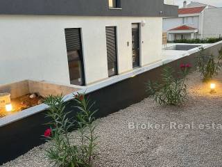Smješteni u prizemlju, stanovi se sastoje od 2 spavaće sobe, hodnika, blagovaonice, kupatilom te dnevnim boravkom. Iz dnevnog boravka je izlaz u dvorište s privatnim bazenom i natkrivenom terasom. Uz stan dolazi i vanjsko parkirno mjesto pored zgrade.