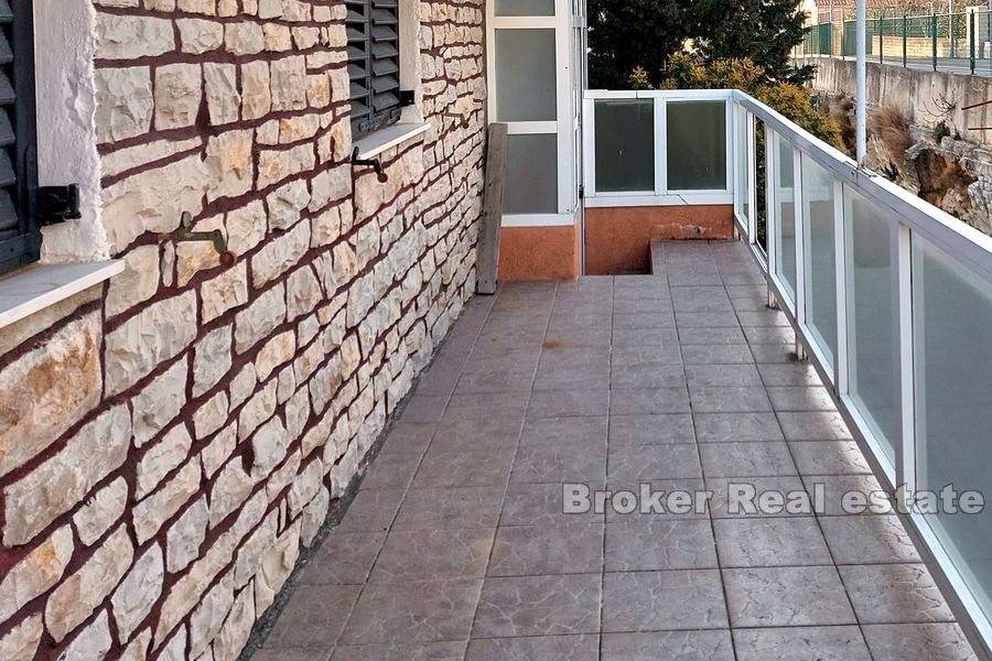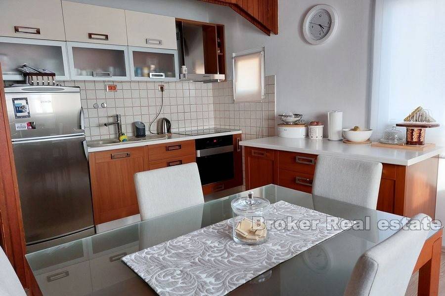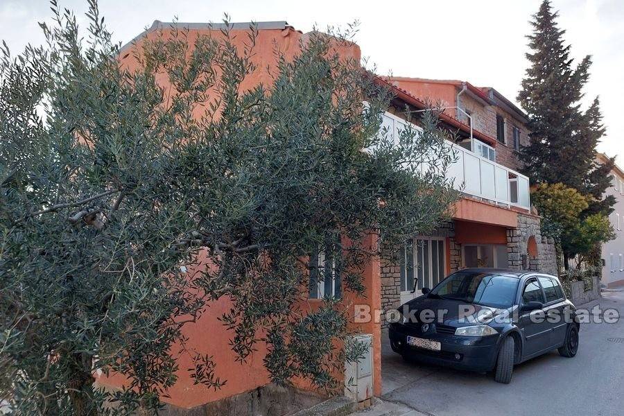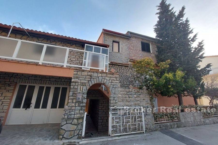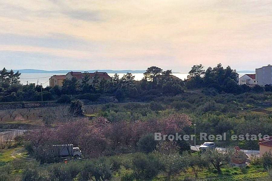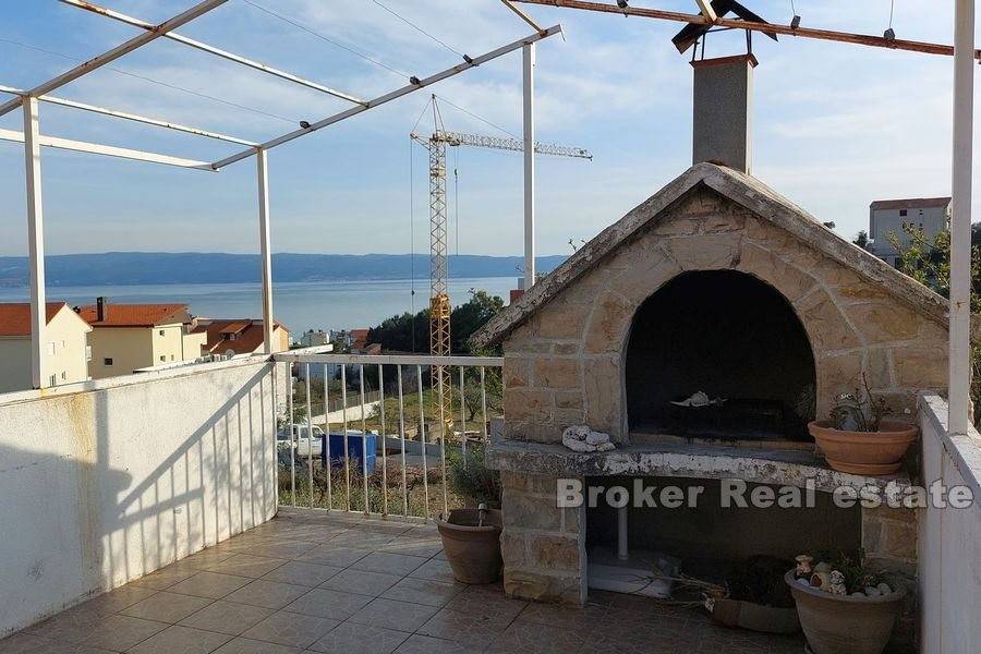 Kuća u okolici Splita sa otvorenim pogledom na more i otok Brač. Nekretnina stambene površine od 630 m2 rasprostranjena je na tri stambene jedinice. Objekt je podijeljen je na dva dijela. Prvi ima podrum i garažu te se u njemu nalazi jedan apartman. Drugi dio kuće se sastoji od podruma s garažom te dva stana od kojih je jedan dvoetažan. Svaki stan ima prostranu terasu sa kaminom s koje se pruža predivan pogled na more. U podrumu se nalazi kotlovnica za centralno grijanje. Okućnica površine 444 m2 nudi dovoljno prostora za lijepi vrt ili izgradnju bazena. Kuća se nalazi u mirnom susjedstvu 11 km od centra Splita. Udaljenost od mora je 800 m.