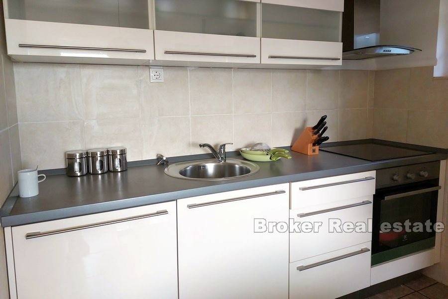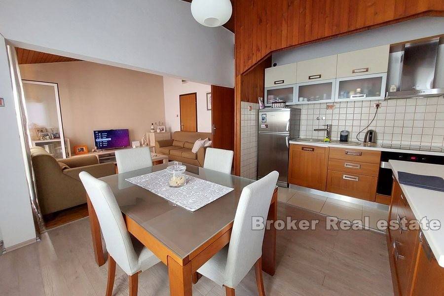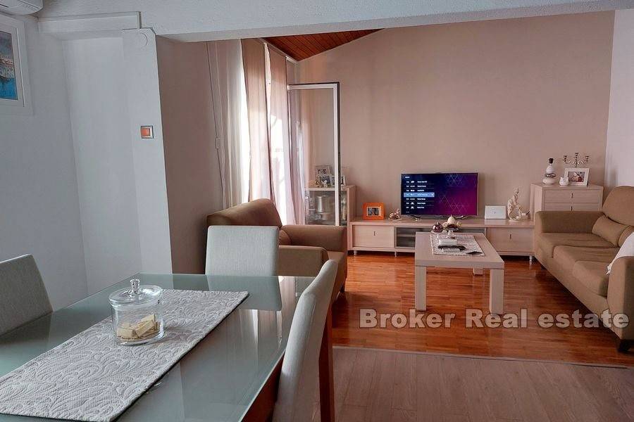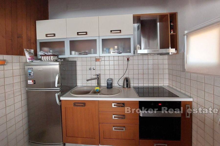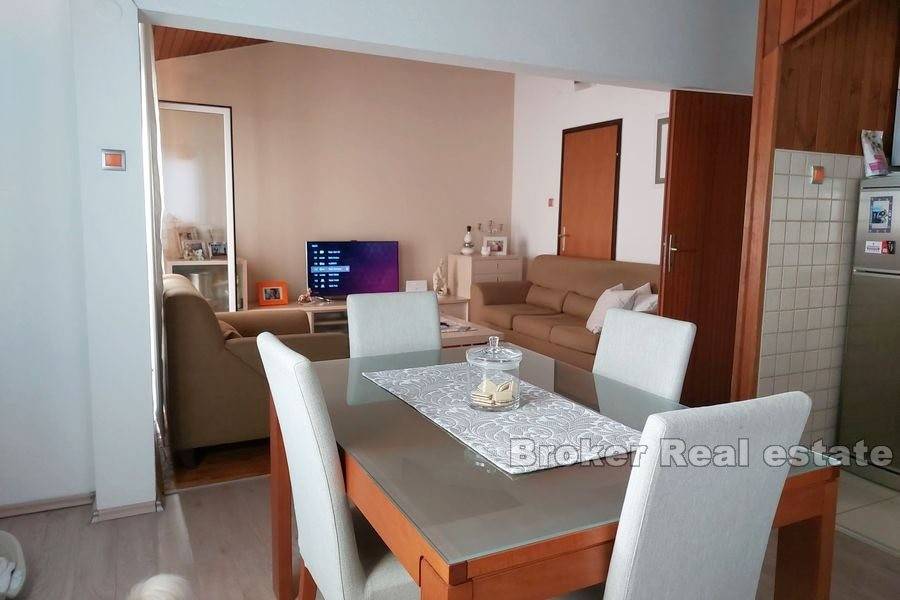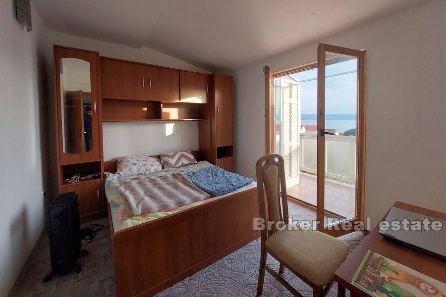 Kuća u okolici Splita sa otvorenim pogledom na more i otok Brač. Nekretnina stambene površine od 630 m2 rasprostranjena je na tri stambene jedinice. Objekt je podijeljen je na dva dijela. Prvi ima podrum i garažu te se u njemu nalazi jedan apartman. Drugi dio kuće se sastoji od podruma s garažom te dva stana od kojih je jedan dvoetažan. Svaki stan ima prostranu terasu sa kaminom s koje se pruža predivan pogled na more. U podrumu se nalazi kotlovnica za centralno grijanje. Okućnica površine 444 m2 nudi dovoljno prostora za lijepi vrt ili izgradnju bazena. Kuća se nalazi u mirnom susjedstvu 11 km od centra Splita. Udaljenost od mora je 800 m.