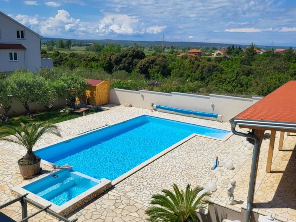 Prodaje se luksuzna samostojeća kuća s bazenom u mjestu Donja Jagodnja, smještena u mirnom zaleđu Biograda na Moru, udaljena svega 5 km od mora i plaža. Ova atraktivna nekretnina idealna je za obiteljski život, odmor ili kao izvrsna investicija za turistički najam.
