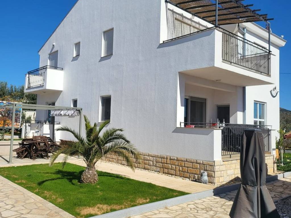 Uređena i ograđena okućnica zasađena maslinama, limunima i palmama pruža visoku razinu privatnosti i luksuza. U dvorištu se nalazi: