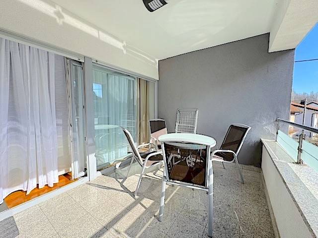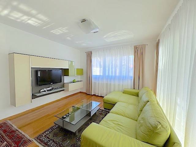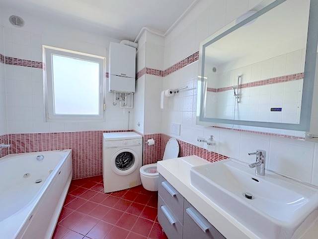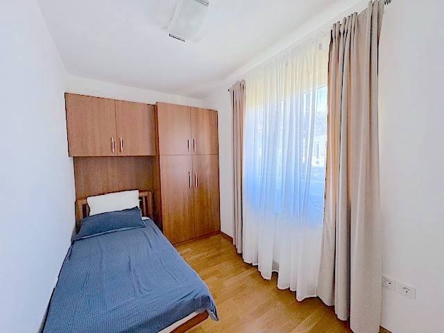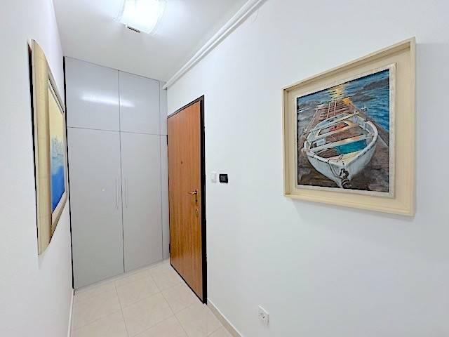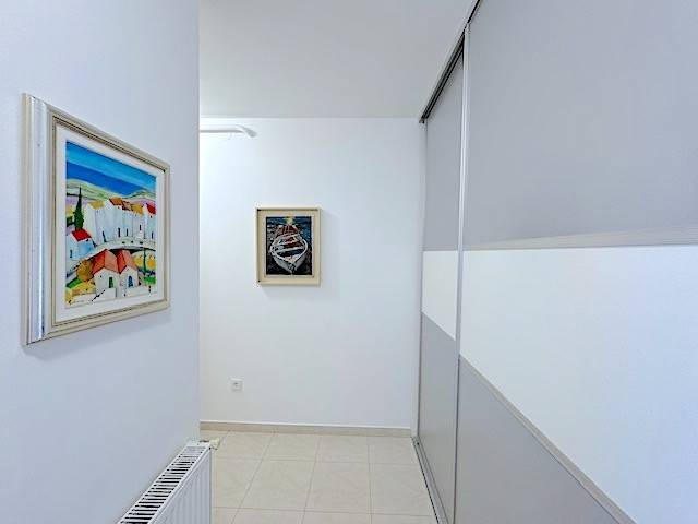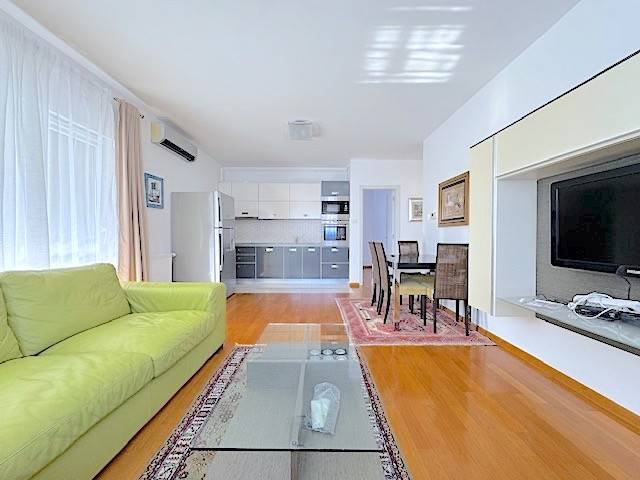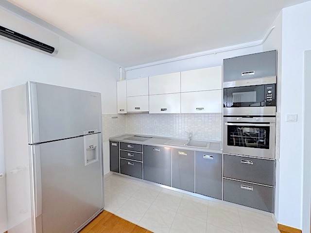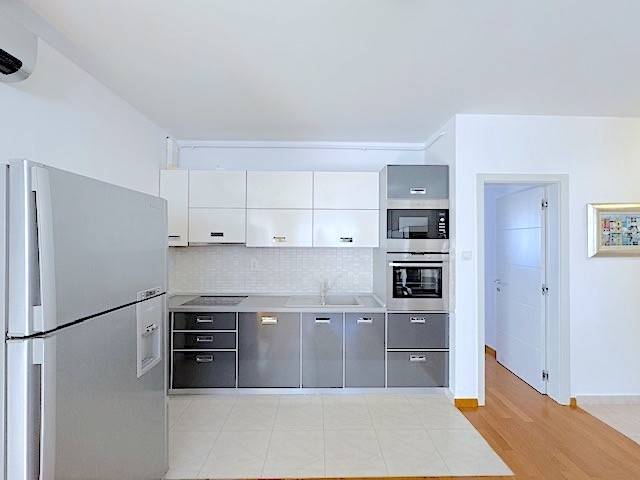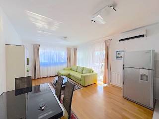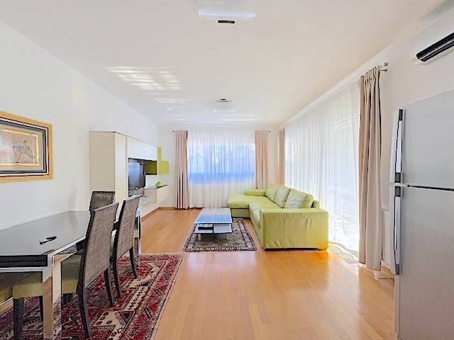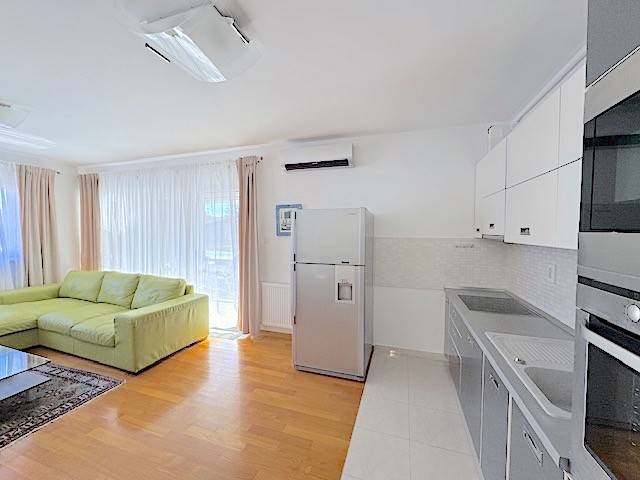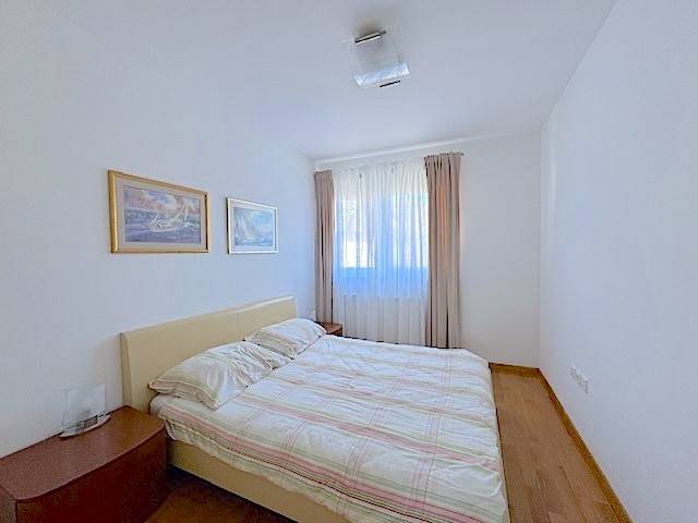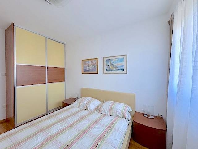 Stan se nalazi na prvom katu novije zgrade a, sastoji se od dnevnog boravka s kuhinjom i blagovanjem i izlazom na lođu (10m2), 2 spavaće sobe, kupaonice. Potpuno je namješten i ima parkirno mjesto u dvorištu zgrade ( 11 m2 ). Mogućnost korištenja teretane, saune i hidromasažne kade u zgradi udaljenoj samo 100-ak m od stana.