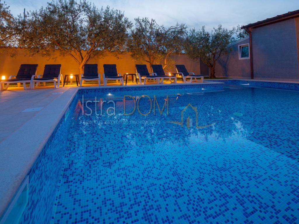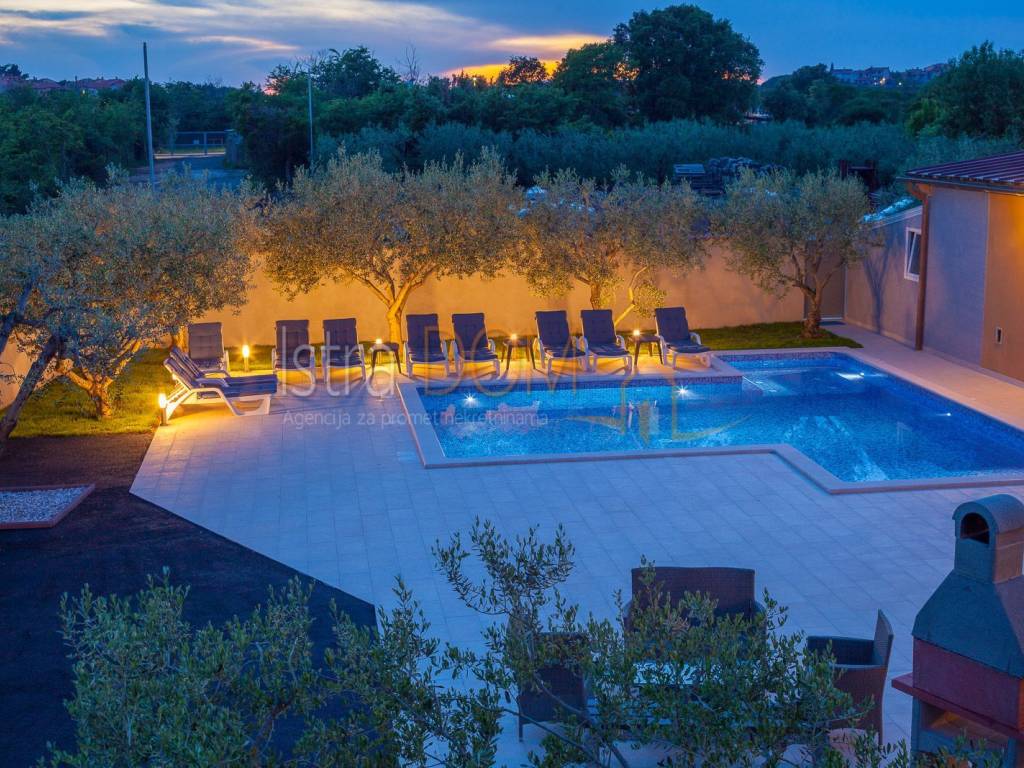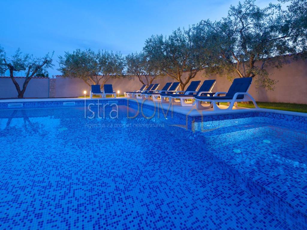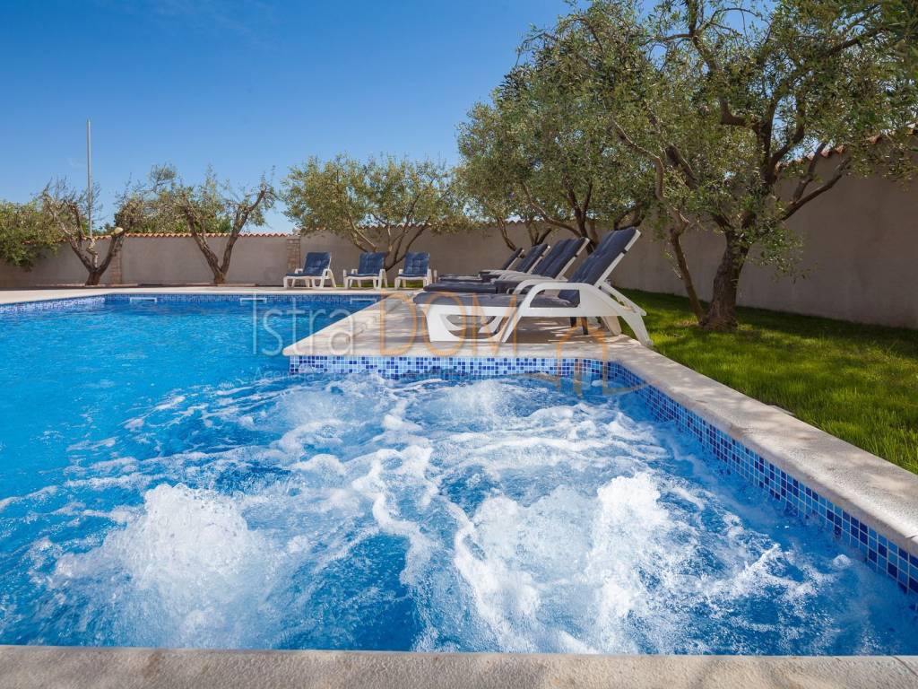 Dvorište: 900 m² s 40 maslina, bazenom od 70 m² (s plitkim dijelom za djecu i jacuzzijem).