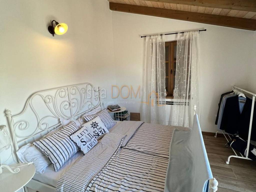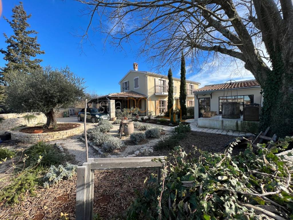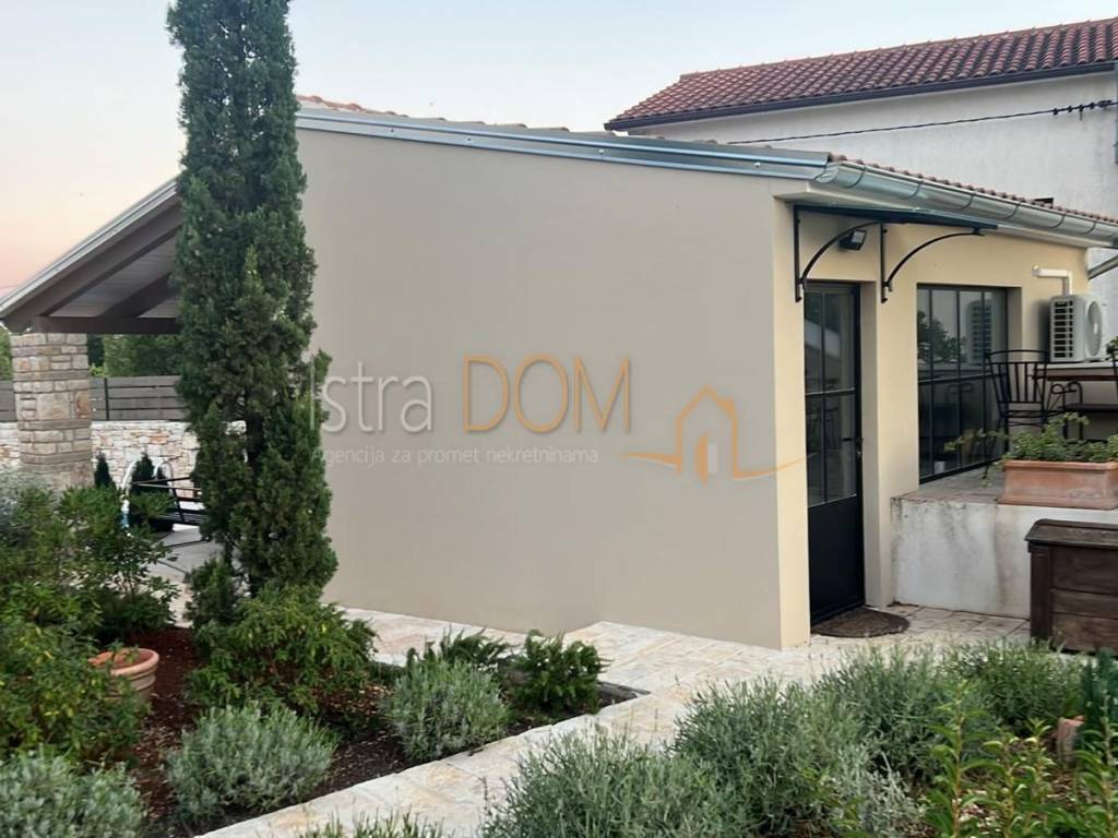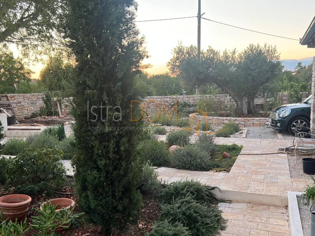 Okućnica je pažljivo uređena i okružena mediteranskim biljem, pružajući savršeno okruženje za opuštanje i uživanje u prirodi. Dodatno, uz kuću se nalazi pomoćni objekt od 23 m², opremljen kupaonicom i terasom, koji može poslužiti kao gostinjska soba ili prostor za rekreaciju.