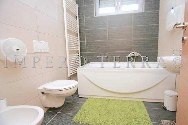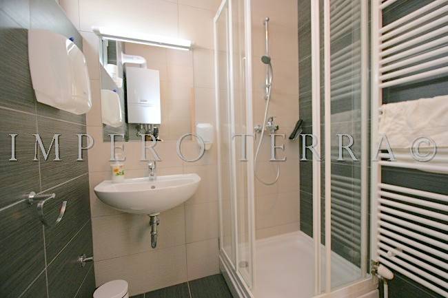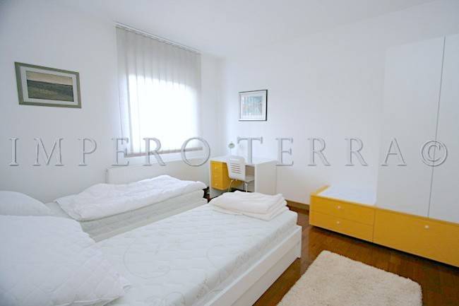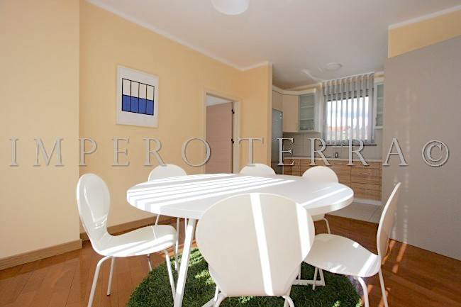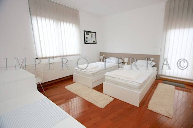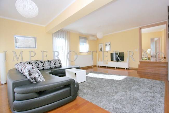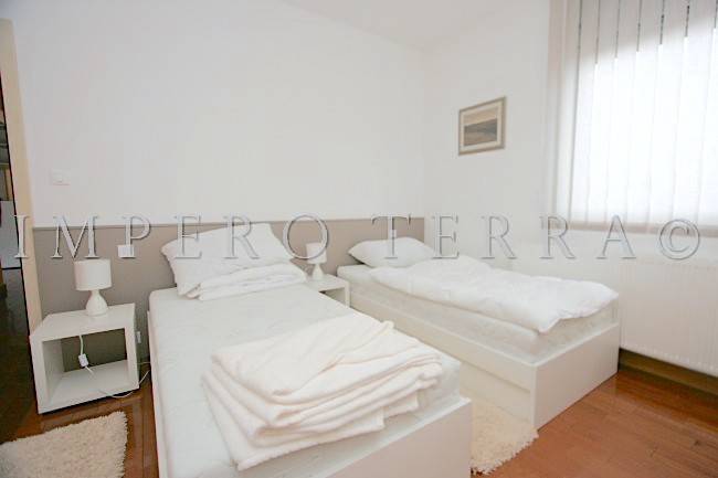 Stan se nalazi na zadnjem katu novije zgrade a, sastoji se od dvije spavaće sobe, ulaznog hodnika, 2 kupaonice, kuhinje sa blagovanjem, garderobe, dnevnog boravka i dvije terase (31,51 m2 i 28,92 m2). Potpuno je namješten i ima parkirno mjesto u dvorištu zgrade. Plinsko centralno grijanje, klimatizirano.
