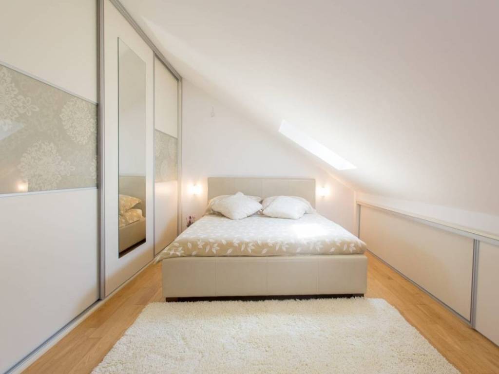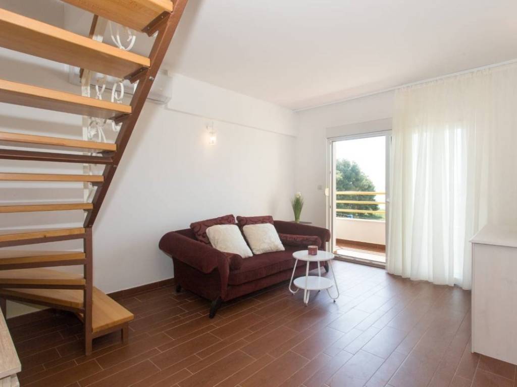 Dvosoban, potpuno namješten i uređen dvoetažni stan ukupne korisne površine 80 m2, smješten na drugom katu manje stambene zgrade, ujedno i posljednjem katu, što osigurava dodatni mir i privatnost.