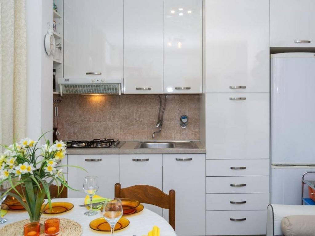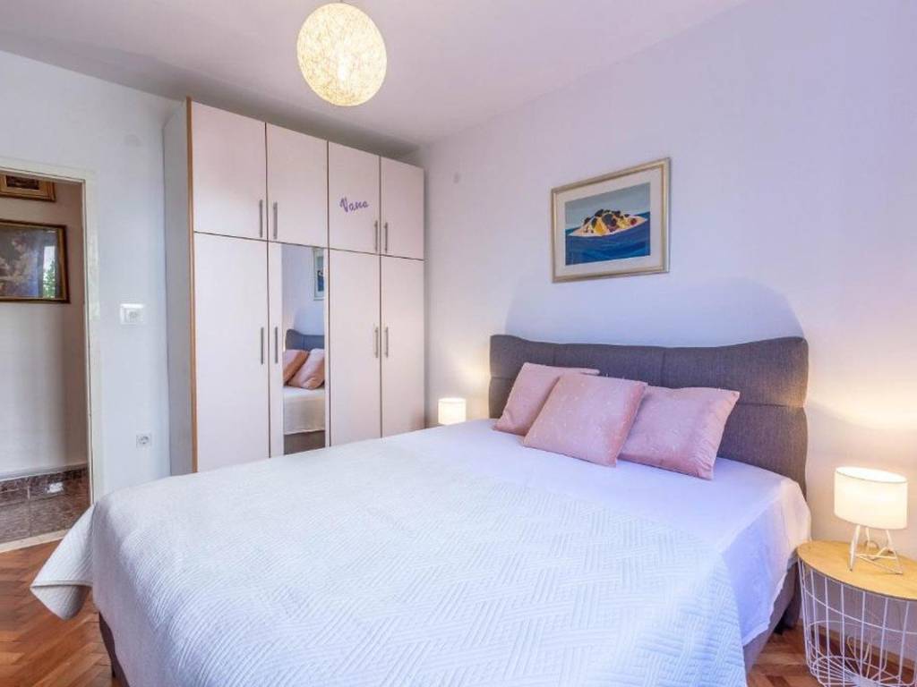 Svega nekoliko minuta hoda od mora prodaje se uređen dvosoban stan smješten u prizemlju manje stambene zgrade koja se sastoji od prizemlja i dva kata, ukupno tri stana. Stan je funkcionalnog rasporeda te obuhvaća dvije spavaće sobe, kupaonicu i kuhinju s dnevnim boravkom u otvorenom konceptu. Prostor je klimatiziran i uredno održavan. Iz kuhinje i s terase pruža se pogled na more.