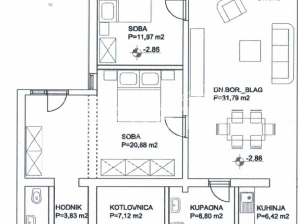 Stan 2 se nalazi u prizemlju i ima ukupnu površinu od 78m2. Sastoji se od dnevnog boravka povezanog s blagovaonicom i kuhinjom u otvorenom konceptu, dvije spavaće sobe te kupaonice. Ispred stana nalazi se terasa koja pruža ugodan prostor za opuštanje i uživanje na svježem zraku. Terasa će se dodati u površinu nakon etažiranja. Mogućnost parkinga u blizini stana.