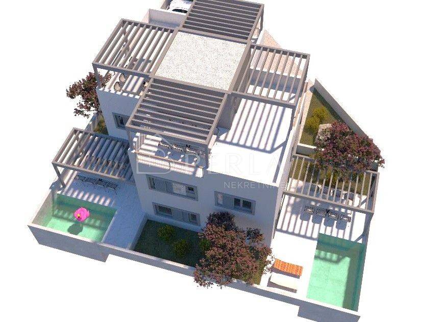 Svaka stambena jedinica prostire se na dvije etaže s izlazom na prostranu krovnu terasu s koje će se pružati prekrasan pogled na more.