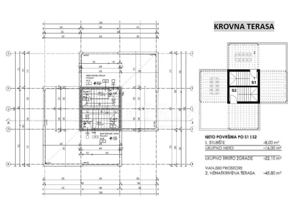 - nenatkrivena krovna terasa (45,80 m2)