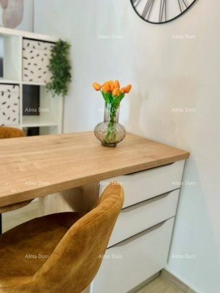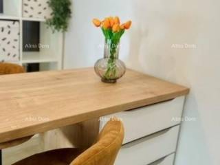 U ponudi garsonjera u prizemlju 34,74 m2. Kompletno uređena i namještena 2024. godine. Opremljena klimom i podnim grijanjem. Velika terasa 12m2. Garsonjeri pripada parkirno mjesto.
