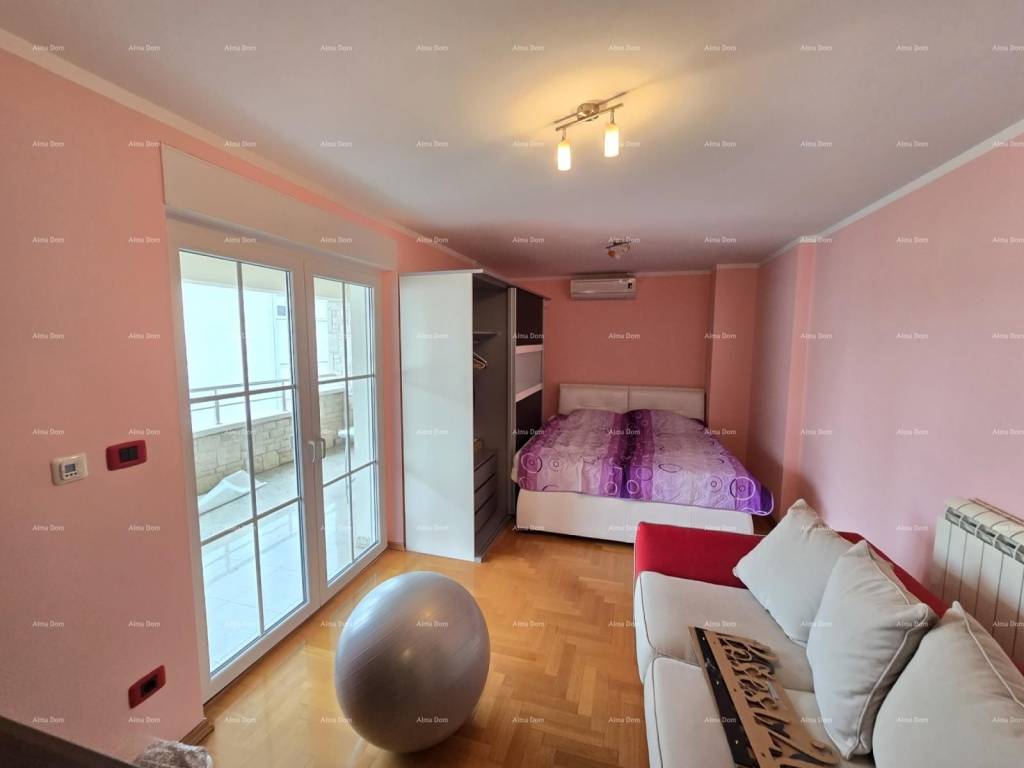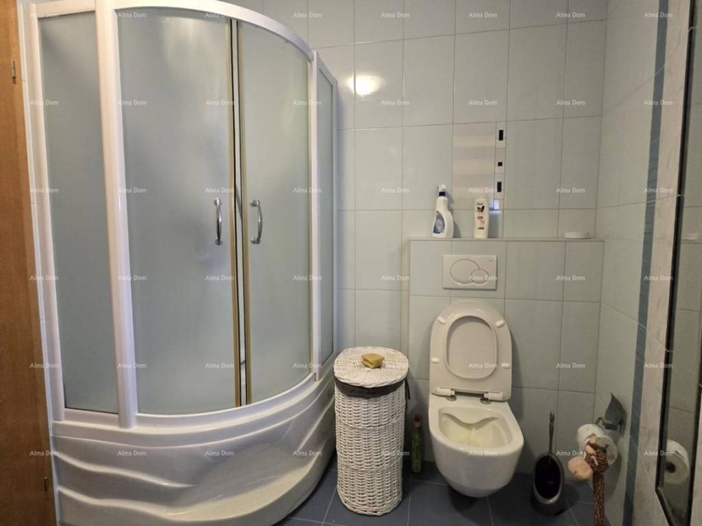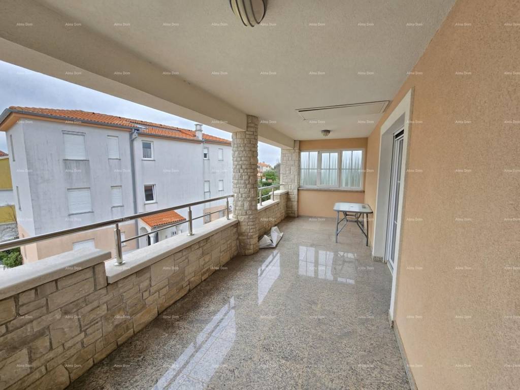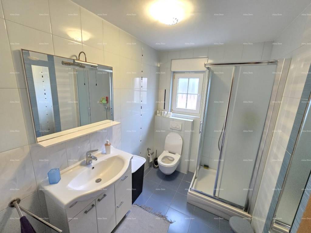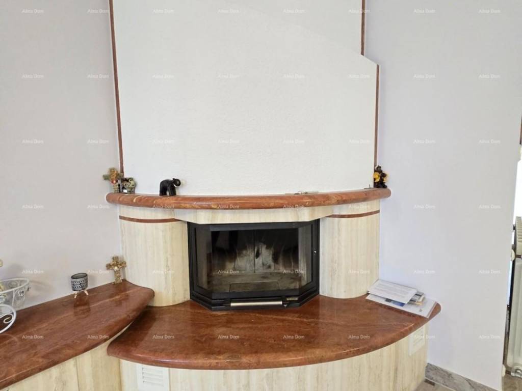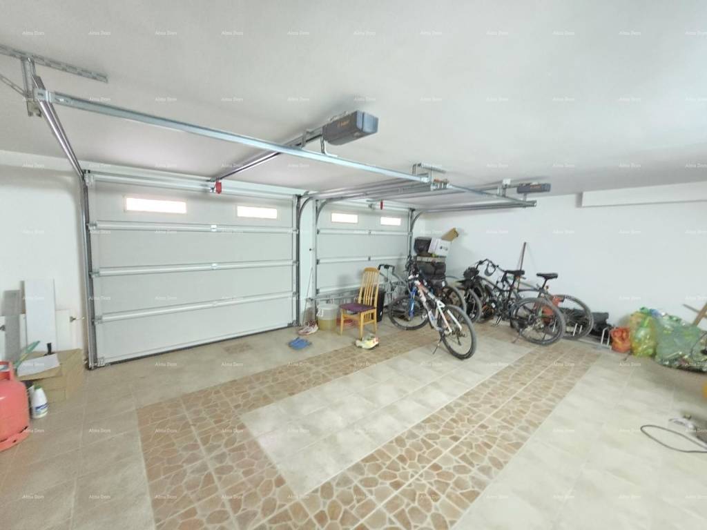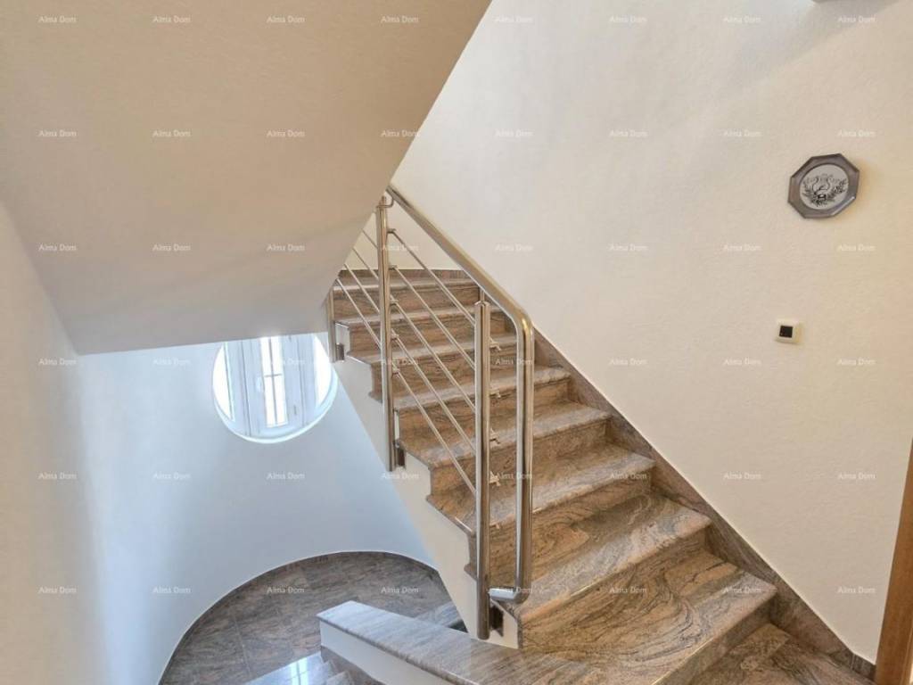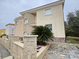 Kuća se sastoji od suterena, gdje je smještena dupla garaža, tehnička soba, kupaonica, vešeraj i fitness sala. Na visokom prizemlju se nalazi spavaća soba, velika kupaonica s kadom i tuš kadom, prostrani dnevni boravak s kaminom, blagavaonica i kuhinja te terasa. Na katu kuće se nalaze tri spavaće sobe ( jedna s vlastitom kupaonicom ) te radna soba. Spavaće sobe imaju svaka svoju natkrivenu prostranu terasu. Kuća je povezana unutarnjim stepenicama. Klimatizirana. Podno grijanje u kupaonicama te u dnevnom dijelu kuće. Centralno grijanje na naftu u cjeloj kući putem radijatora. Kamin na drva kao centralni dio dnevnog boravka. Po dogovoru se prodaje s namještajem. Moguće brzo useljenje. Okućnica s automatskim navodnjavanjem. Parking za 5 automobila. Odlučna kuća za obiteljski život ili za iznajmljivanje. Lokacija je odlična, blizina mora na cca 100 metara. Blizina plaže na cca 900 metara.