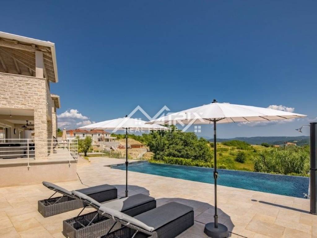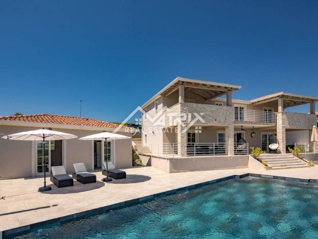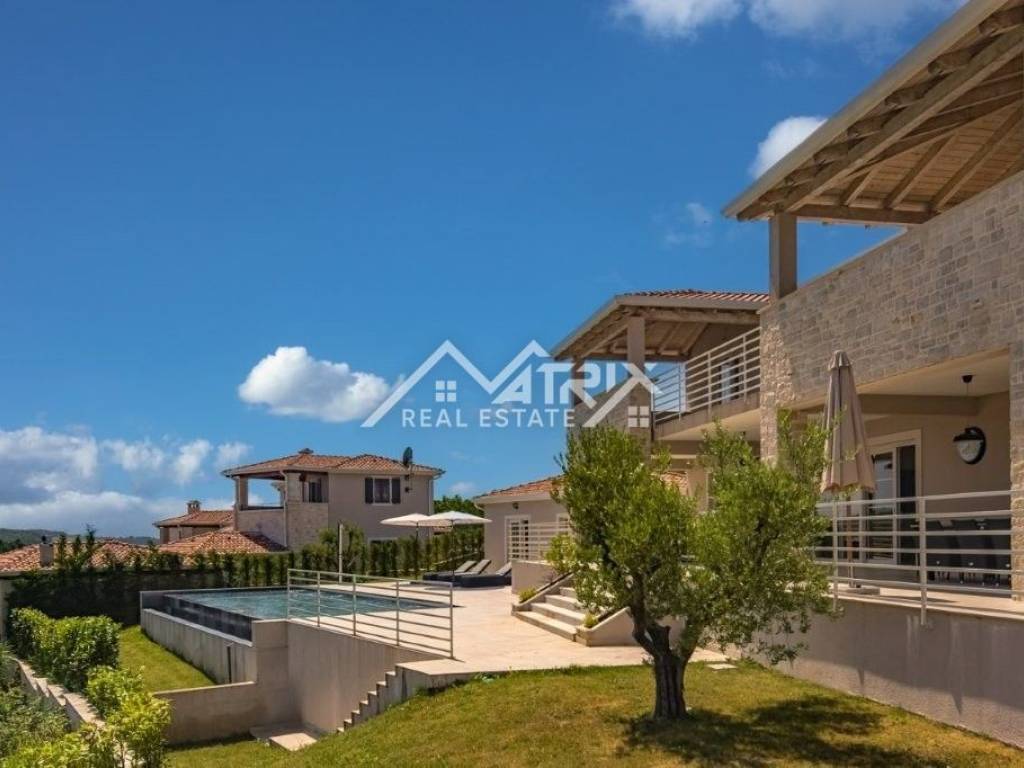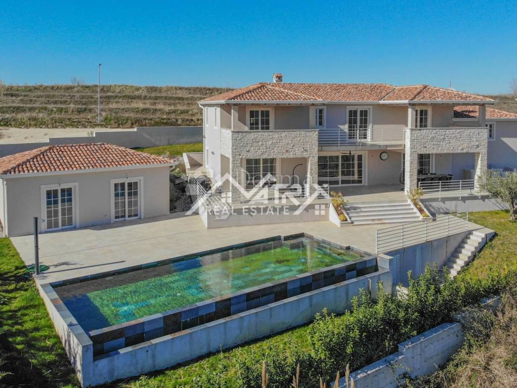 Ukupna izgrađena površina iznosi 432 m², od čega 261 m² čini pažljivo projektiran interijer raspoređen na dvije etaže. Natkrivene terase (53 m²), garaža (40 m²), vanjski parking (24 m²) i grijani bazen od impresivnih 54 m² zaokružuju cjelinu koja je osmišljena za život – ne samo za boravak.
