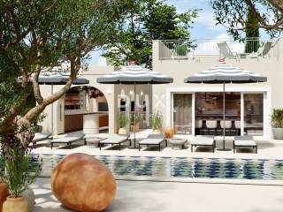 Raskošna okućnica je ambijentalno i hortikulturno uređena a savršen sklad nadopunjuju bazen sa sunčalištem, natkrivena ljetna kuhinja, dječje igralište, zona s otvorenim ognjištem, platforme za jogu i lounge zona natkrivena pergolom.
