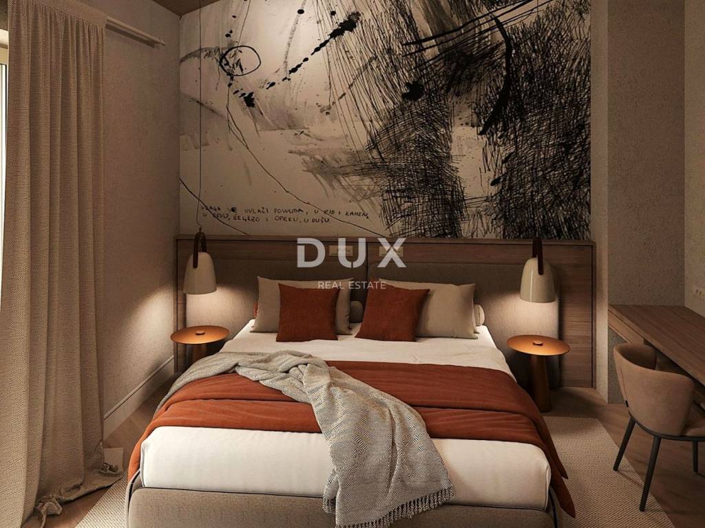 Luksuzna vila s naglaskom na funkcionalnost i estetiku se oblikovno i koloristički uklopa u naselje i krajolik, razvedena je na dvije etaže funkcionalnog tlocrta a stambena površina nudi skladan životni ambijent okupan prirodnom svjetlošću koji odiše sofisticiranošću i udobnošću uz vrhunski namještaj i opremu visoke kvalitete.