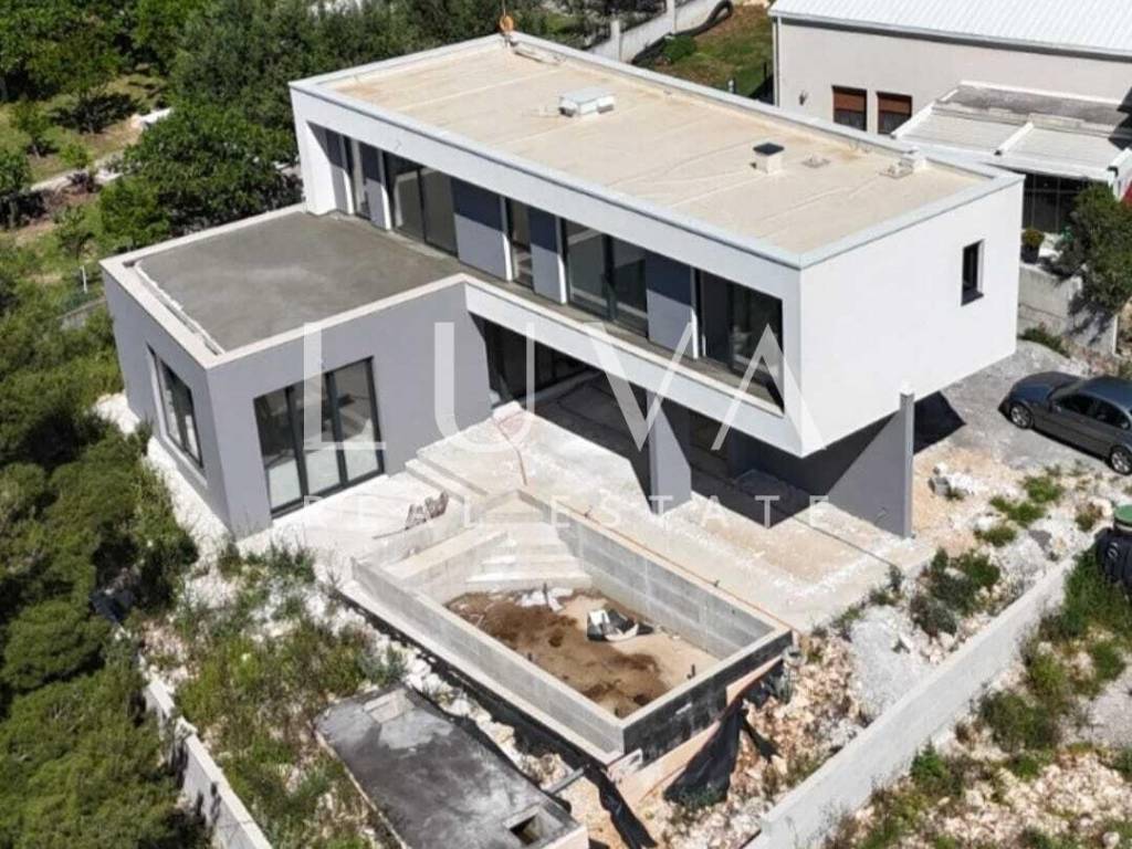 Na izuzetnoj lokaciji, s otvorenim pogledom na ljepote Jadranskog mora, smještena je ova moderna vila s bazenom, projektirana za udoban obiteljski život i visoku razinu privatnosti. Nekretnina se nalazi na parceli ukupne površine 600 m², s uređenim kolnim i pješačkim pristupom te natkrivenim parkingom.
