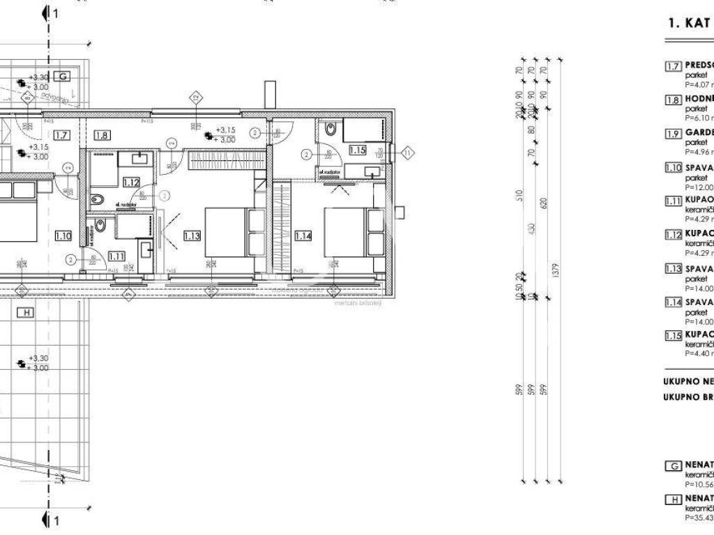 Na katu se nalaze tri komforne spavaće sobe, više kupaonica i garderobni prostori, osiguravajući maksimalnu udobnost i privatnost za sve članove obitelji.