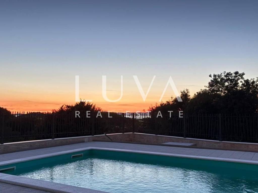 Na okućnici se nalazi grijani bazen s velikim sunčalištem, dok krovna terasa donosi poseban ugođaj – jacuzzi s pogledom na more pretvara svako druženje u nezaboravan doživljaj. Cjelokupni koncept vile osmišljen je za uživanje u mediteranskom načinu života, s naglaskom na spoj luksuza, privatnosti i elegancije. Posebna vrijednost ove ponude je mogućnost kupnje dvije identične vile koje su zrcalno postavljene, što otvara priliku za veću investiciju u turistički najam ili objedinjavanje imanja u jedinstvenu cjelinu. Postoji opcija za organiziranje dodatnih parking mjesta.