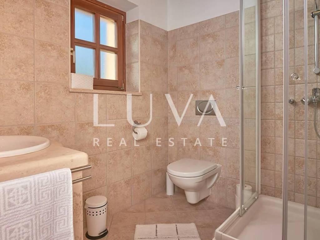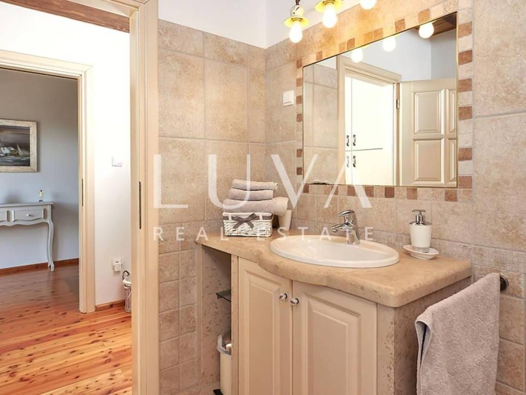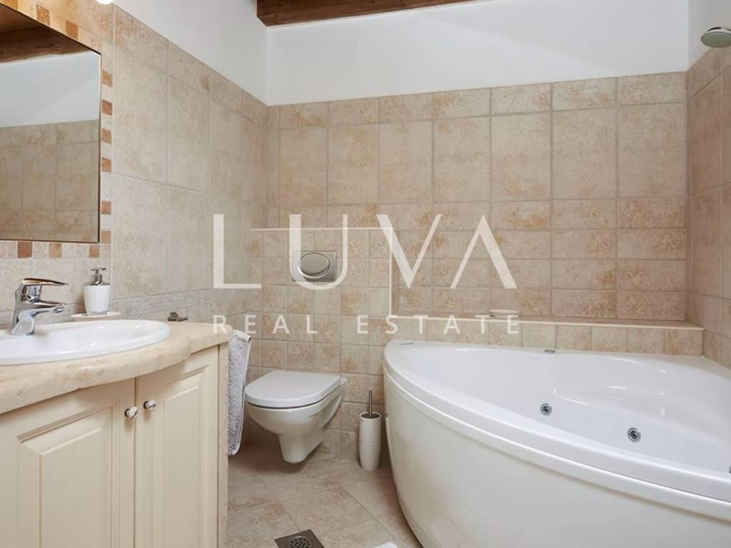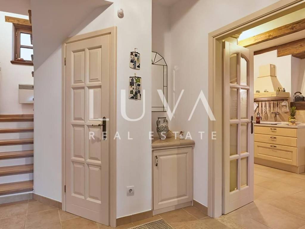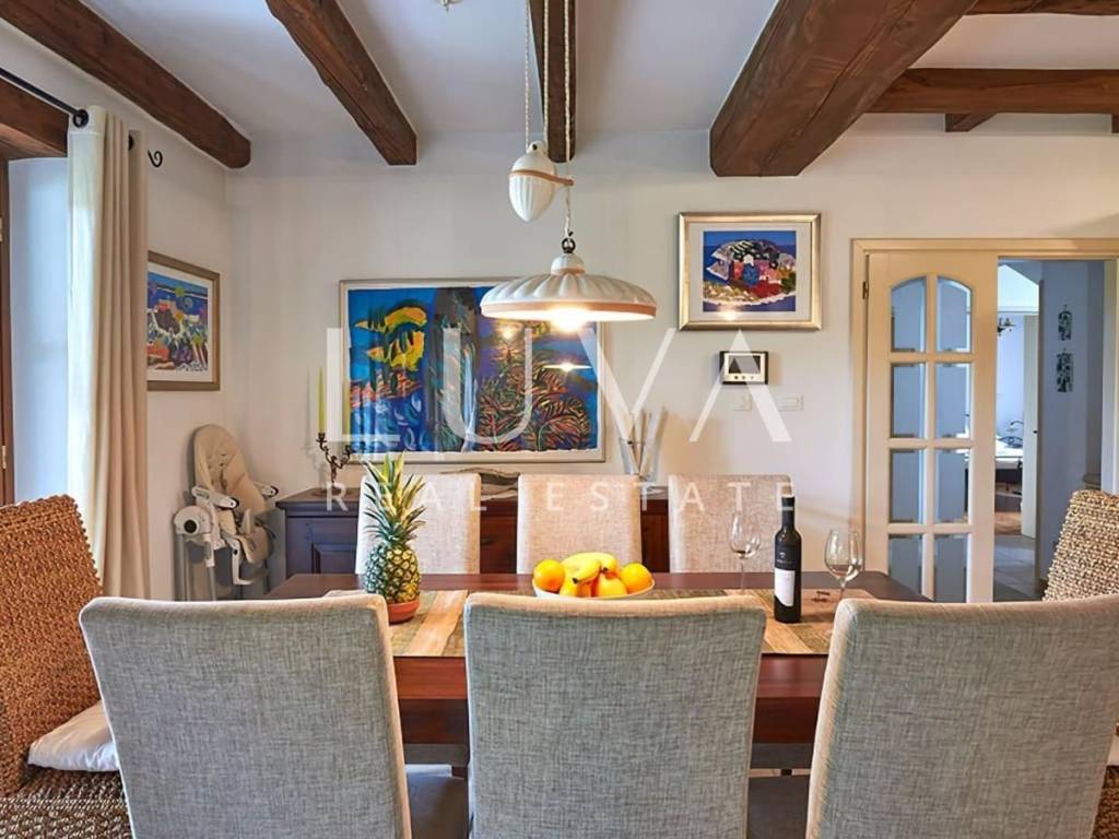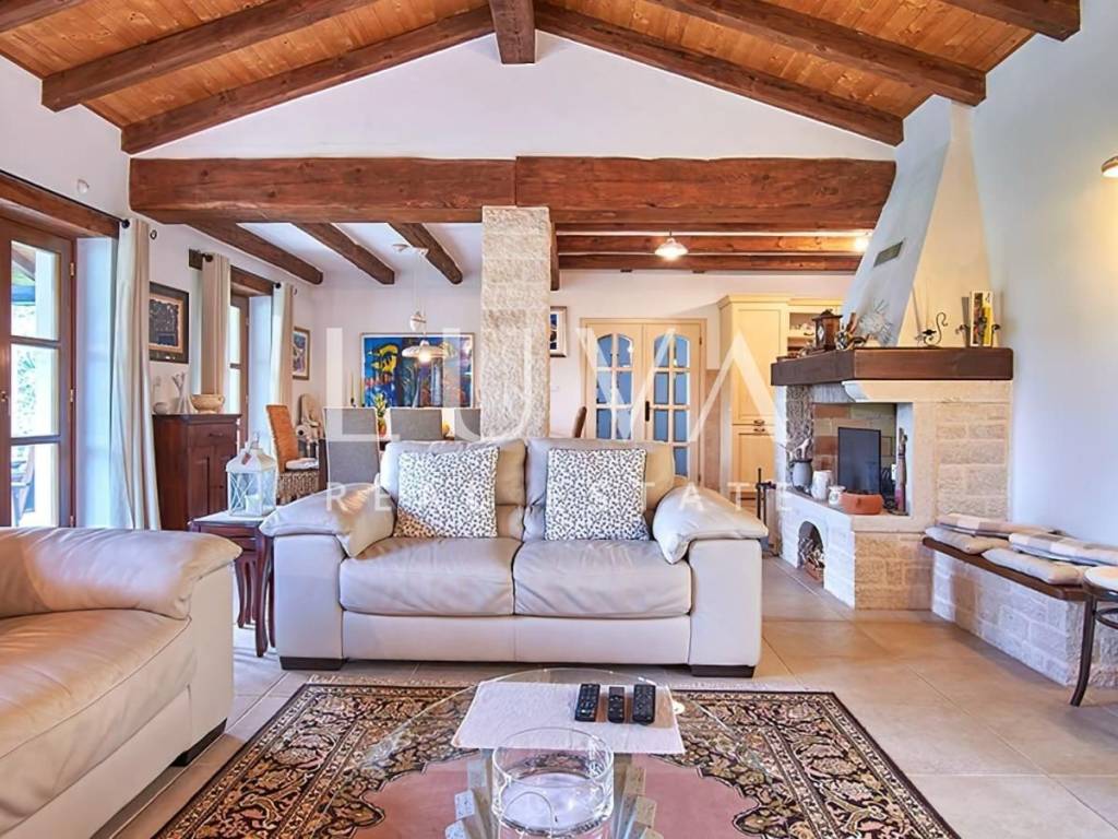 Unutrašnjost kuće nudi četiri prostrane spavaće sobe, svaka s vlastitom kupaonicom i klima uređajem, a dodatnu udobnost osigurava podno grijanje u sobama i kupaonicama. Kuća je potpuno namještena i opremljena, a uključuje i prekrasan vanjski bazen s ljetnom kuhinjom, savršen za opuštanje ili druženja s obitelji i prijateljima. Zidovi debljine 40–60 cm, građeni od cigle i kamena, osiguravaju izvanrednu izolaciju i trajnost.