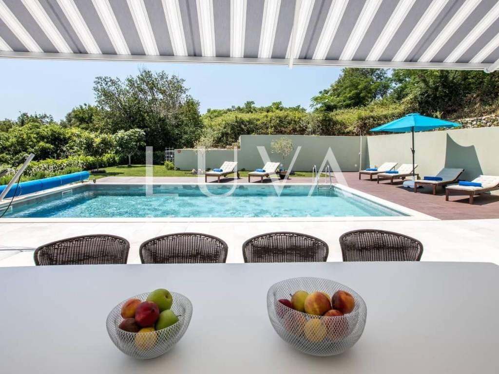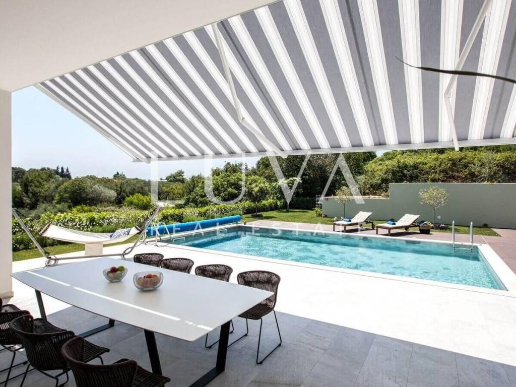 Osim vrhunske unutrašnjosti, vila se može pohvaliti i predivnim panoramskim pogledom na Jadransko more, koji dodatno pojačava ugođaj ekskluzivnosti. Lokacija vile osigurava savršen balans između mira, privatnosti i blizine svih važnih sadržaja, uključujući plaže, restorane i međunarodnu povezanost.