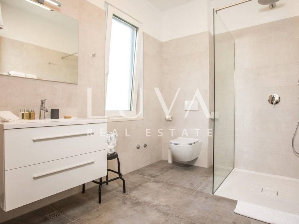 Villa Eleganza raspolaže s četiri moderno uređene spavaće sobe, od kojih svaka ima vlastitu kupaonicu, pružajući maksimalnu privatnost i komfor. Interijer je uređen u sofisticiranom stilu s naglaskom na detalje, kombinirajući suvremeni dizajn s toplinom domaćeg ambijenta. Vila može udobno ugostiti do 11 osoba, što je čini idealnom za obitelji, diplomate ili menadžere na višim pozicijama koji traže dugoročni najam u regiji visoke reputacije.