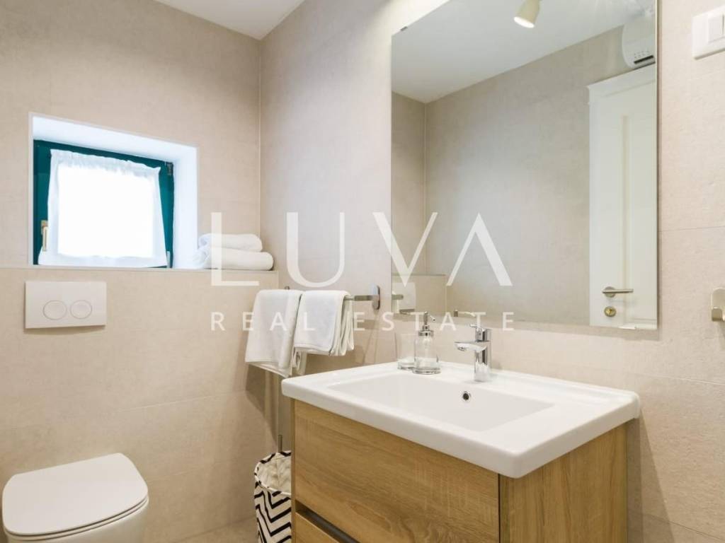 Svaki kutak interijera odiše sofisticiranošću i toplinom – korišteni su vrhunski materijali i dizajnerski namještaj, a obilje prirodnog svjetla i pažljivo birane boje stvaraju atmosferu potpunog mira.