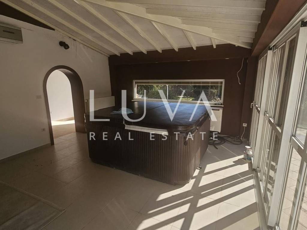 Prizemlje (NKP 311 m²): Garaža za tri automobila, ostava, garderoba, okno za lift, jacuzzi, vinoteka koja se može pretvoriti u apartman za poslugu, bazen dubine 2 m, finska i bio sauna, kotlovnica, vešeraj.